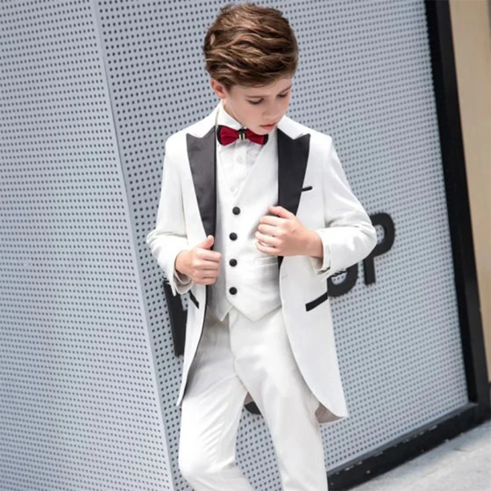 Suit Boys Wedding Tuxedo Black Jacket Vest Pants 3 Piece Set Formal Clothes Holiday Party Blazer Kids Custom Outfit