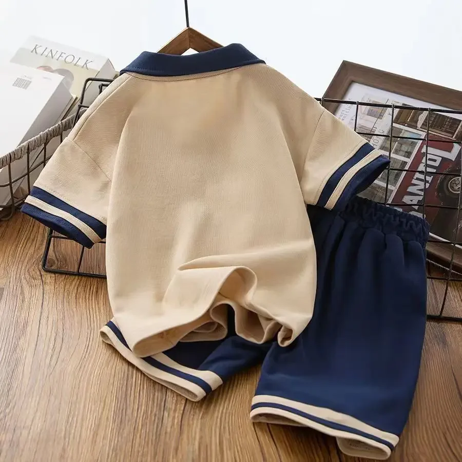 Summer Children Boy Clothes Set Fashion Lapel T-shirts Top and Shorts Bottom 2 Pieces Suit Kid Short Sleeve Outfits Tracksuits