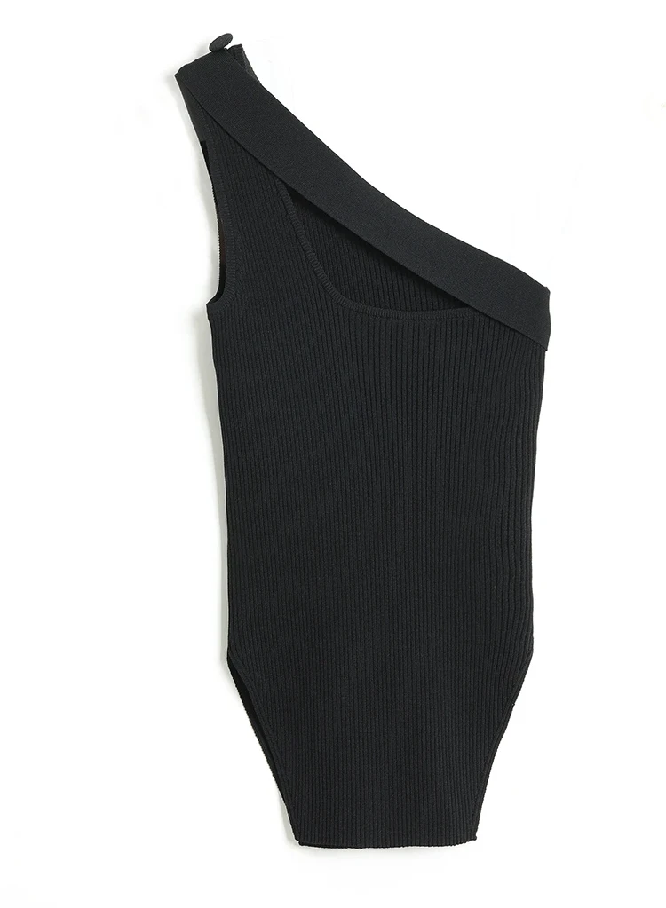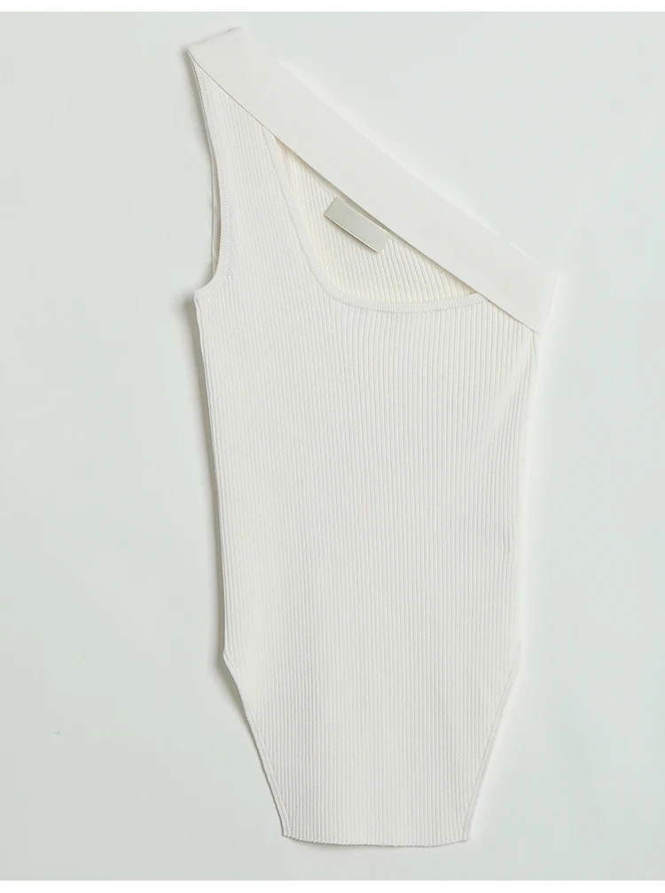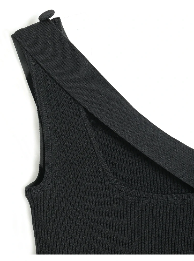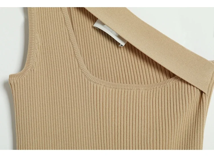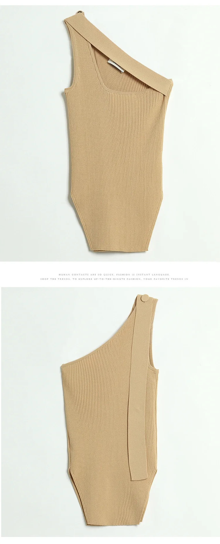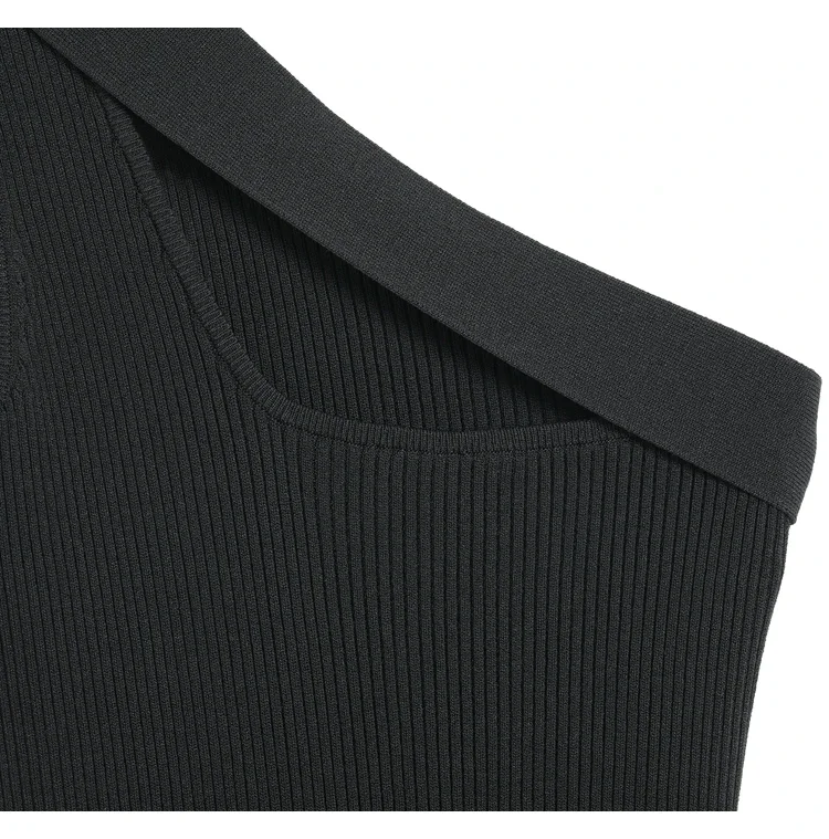 Summer Slimming Sloping Shoulder One-shoulder Vest Tight-fitting Knitted Top Sexy Suspender