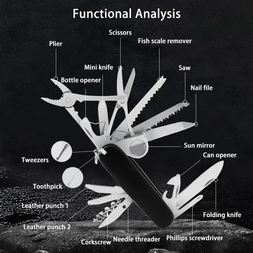 Swiss Multi-functional Knife, Outdoor Camping Folding Combination Tool Knife, Wild Survival, Self-defense Carry-on Fruit Knife