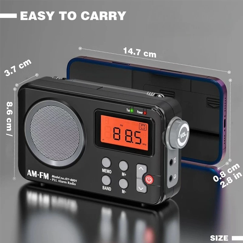 SY-8801 Portable Retro AM FM Radio HD LCD Screen HiFi Sound Loud Speaker Short Wave Radio