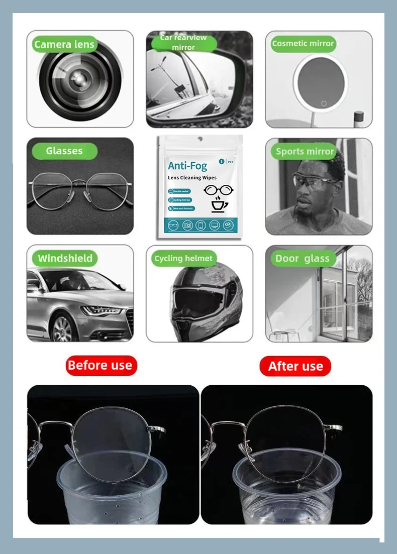 1. Anti-fog cloth to wipe glasses can be reused 10 times.