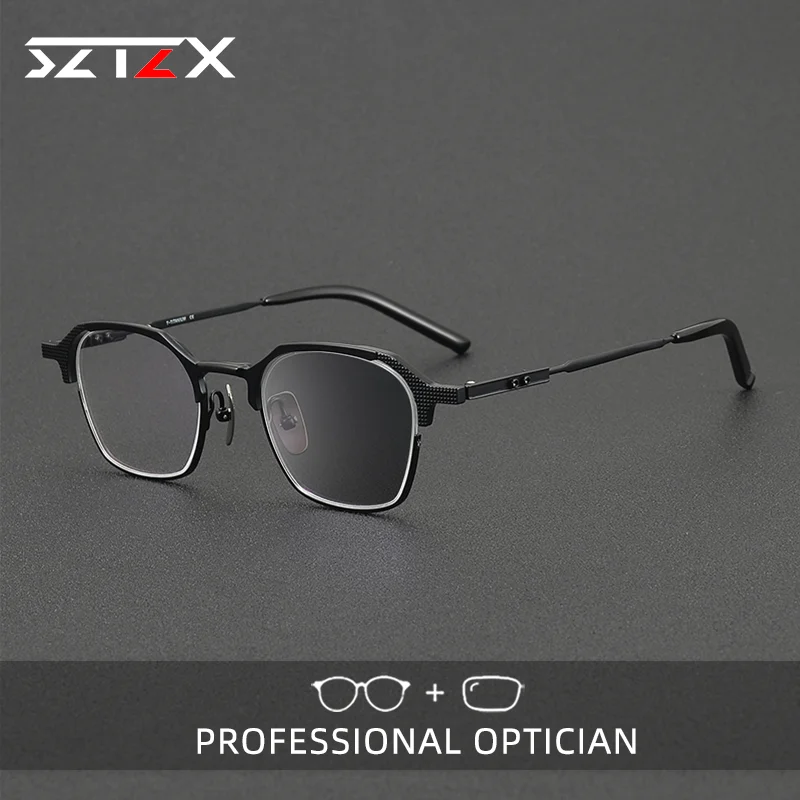 SZTZX Polygonal Pure Titanium Anti Blue Light Glasses Men’s Reading Electroplating Glasses Prescription Photochromic Eyeglasses
