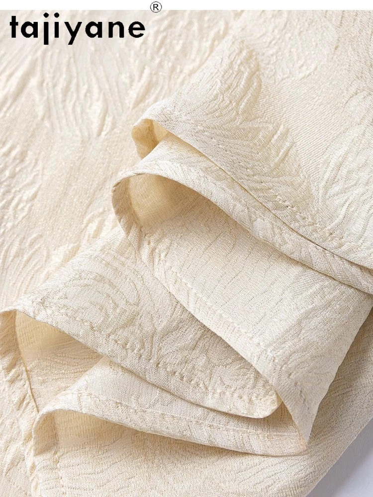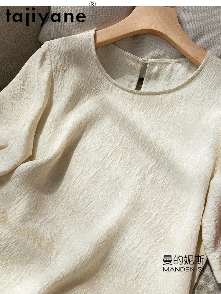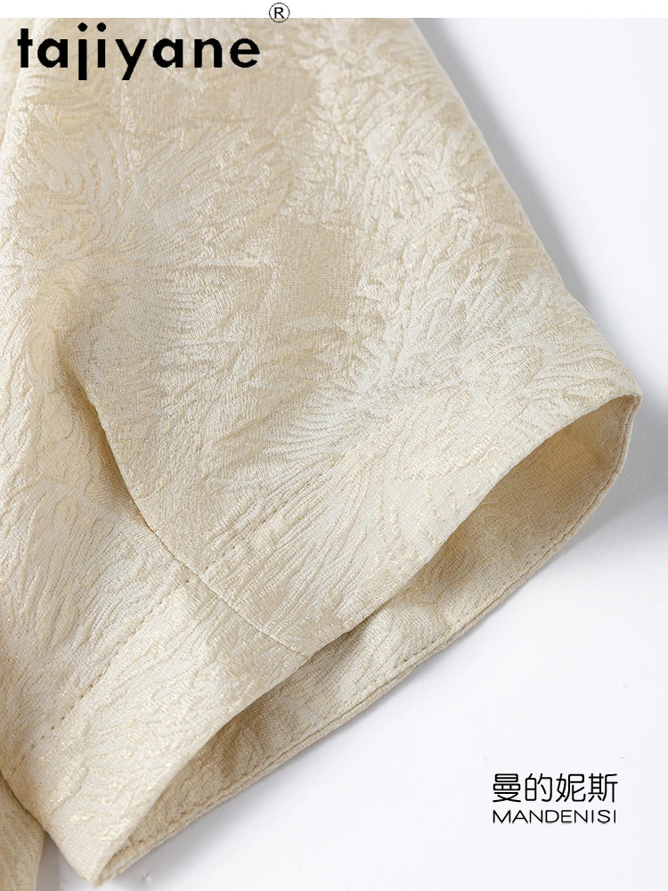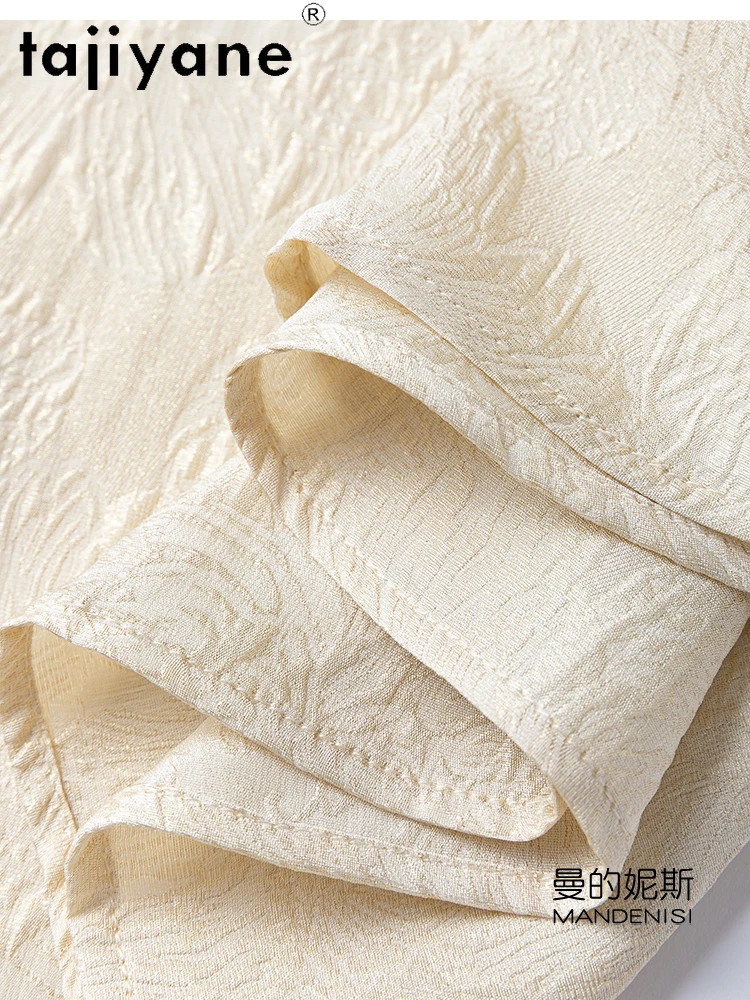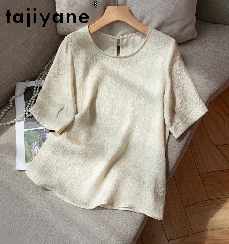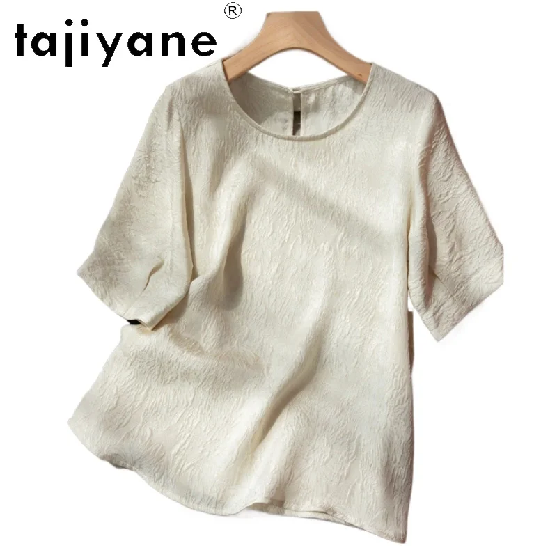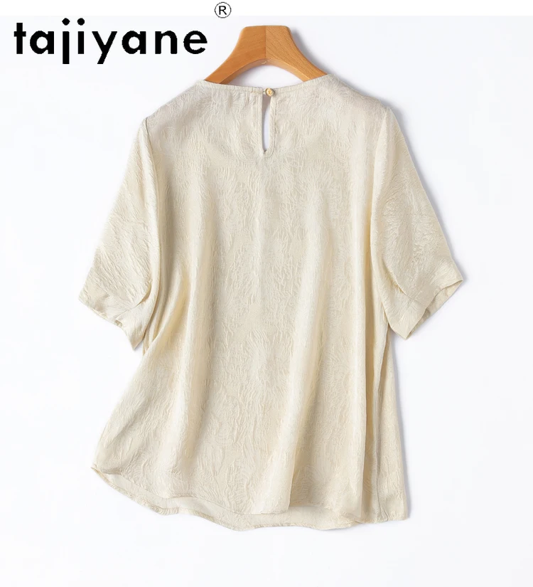 TAJIYANE 100% Natural Mulberry Silk T Shirt Elegant Beige Tops for Woman 2025 Short Sleeve T Shirts Womens Clothes Футболка