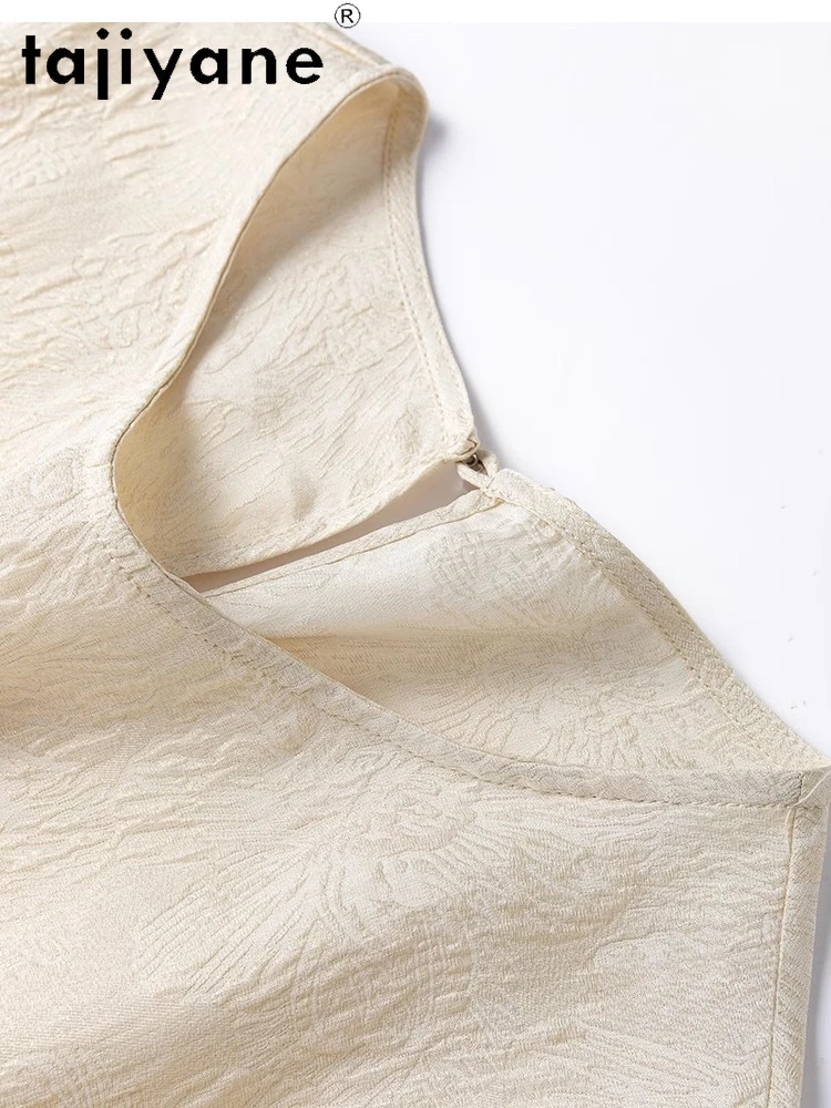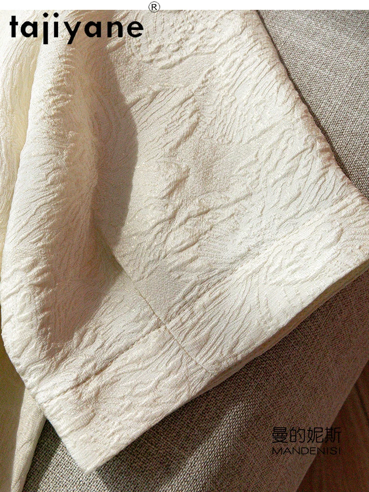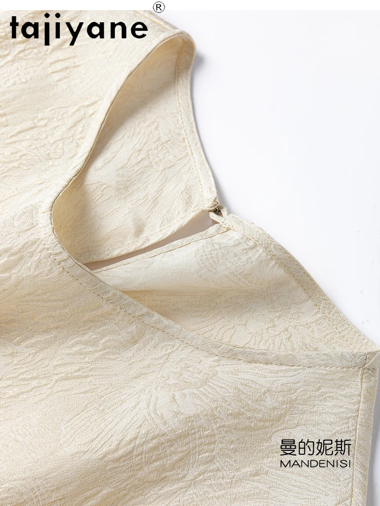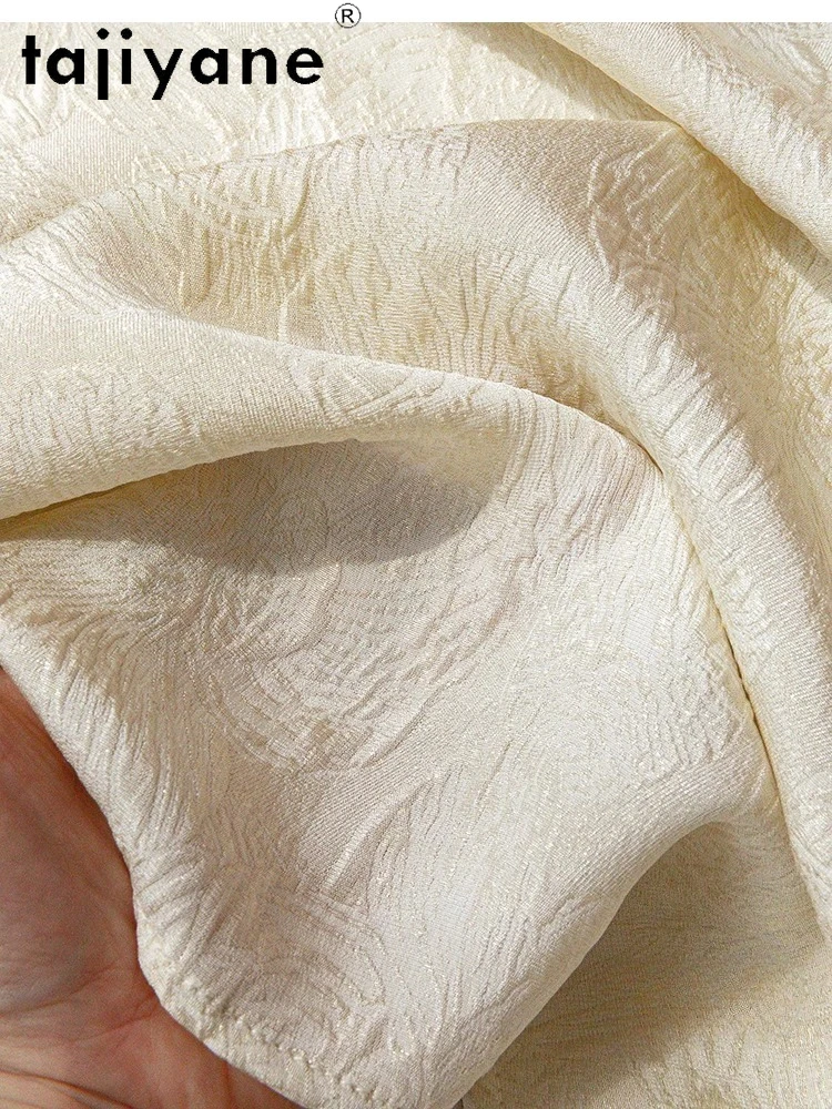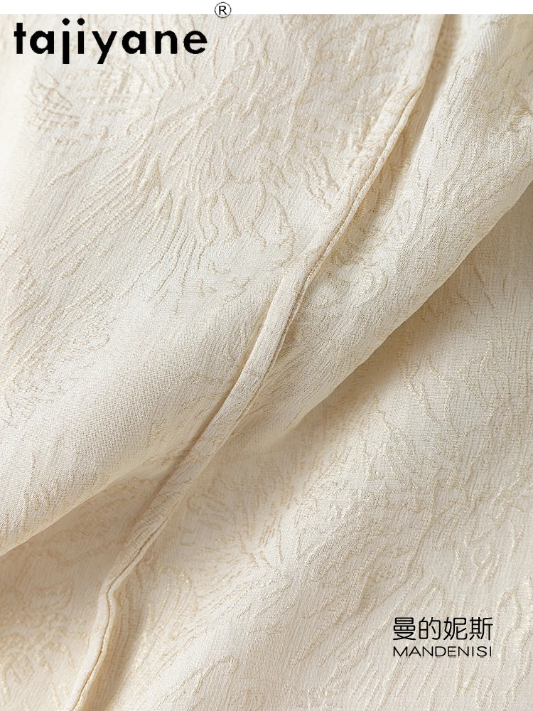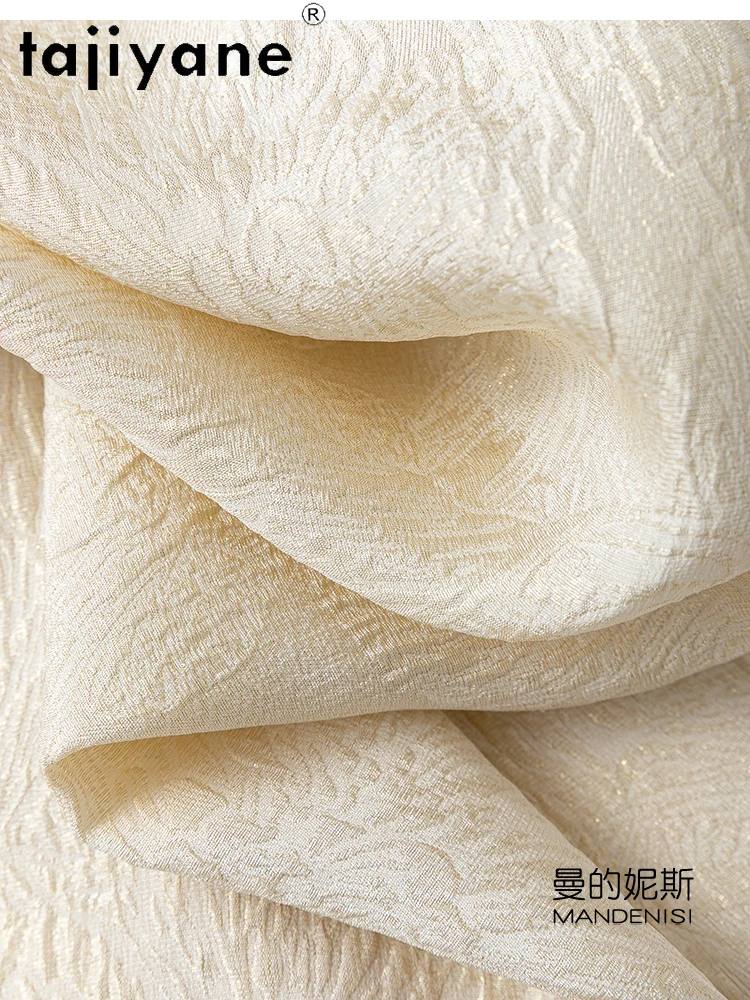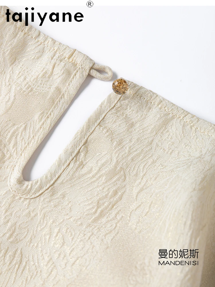TAJIYANE 100% Natural Mulberry Silk T Shirt Elegant Beige Tops for Woman 2025 Short Sleeve T Shirts Womens Clothes Футболка