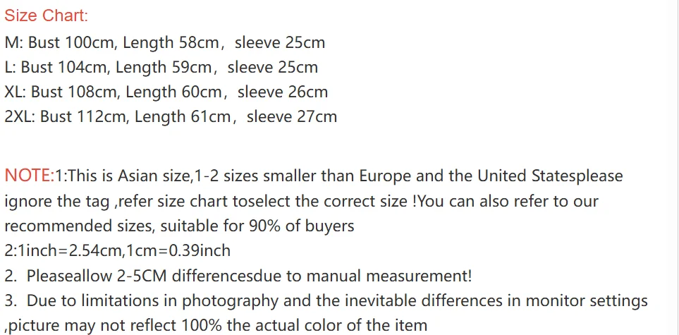 2XL: Bust 112cm, Length 61cm,sleeve 27cm
