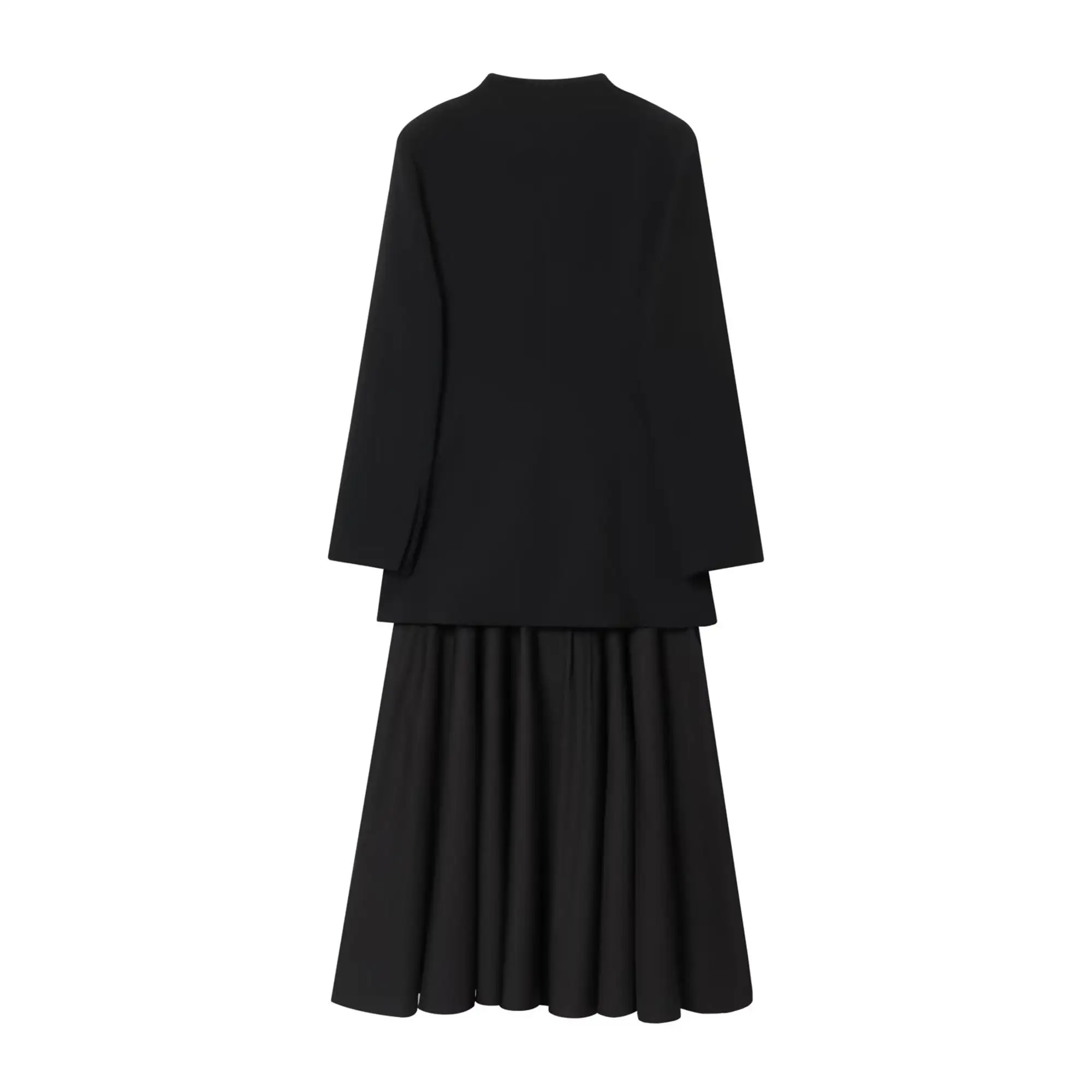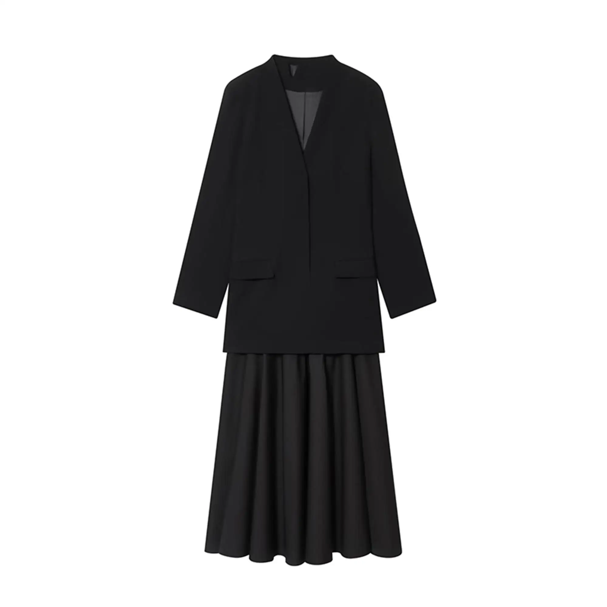 TFMLN Women Blazer Splice Midi Dress New Fashion V-neck Suit Spliced Commuter Long Dress Elegant Female Stylish OL Outfits