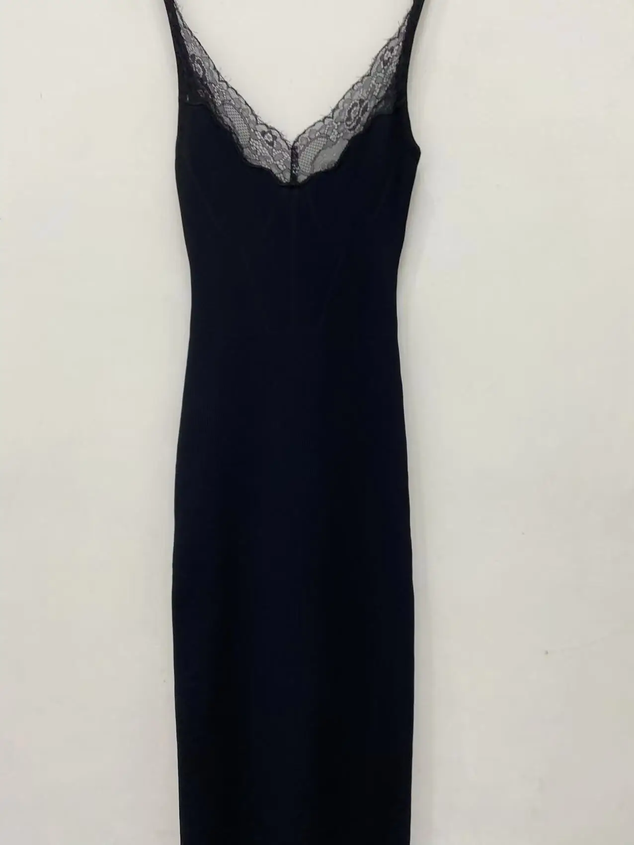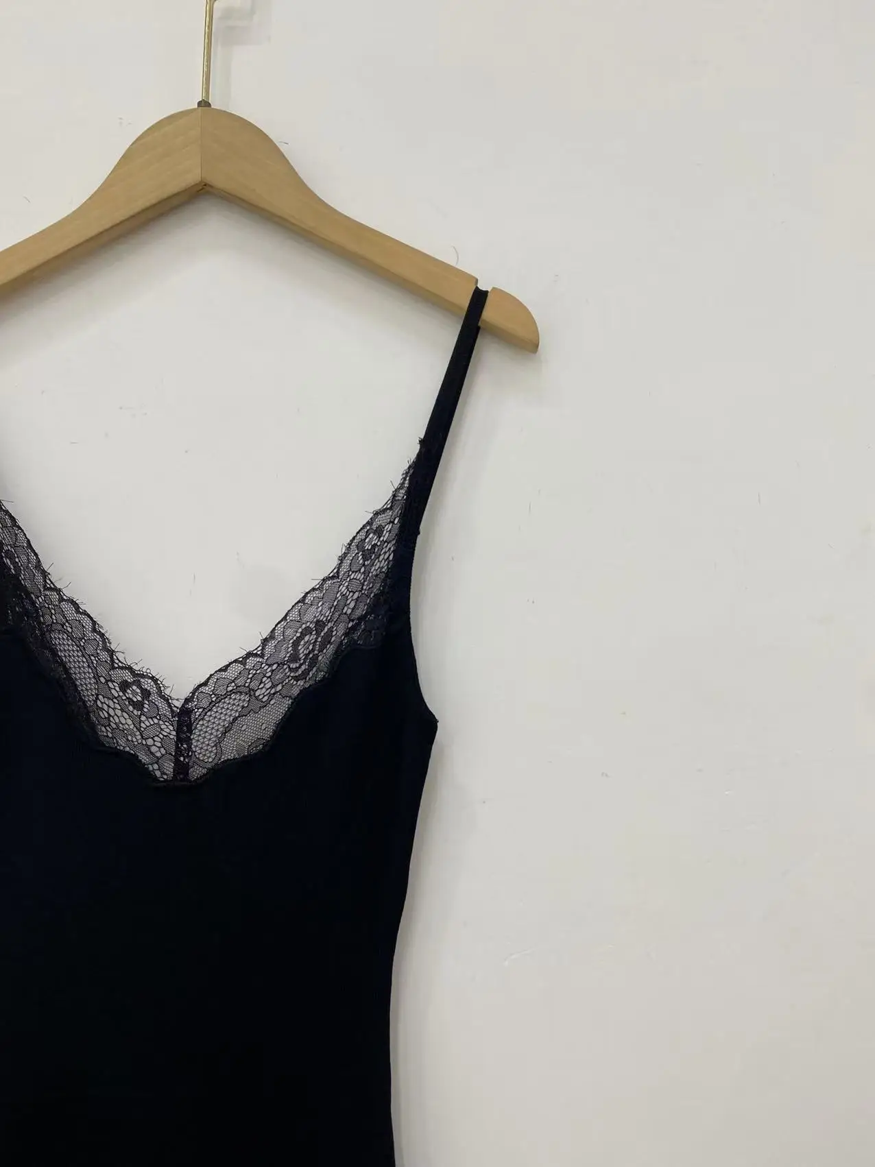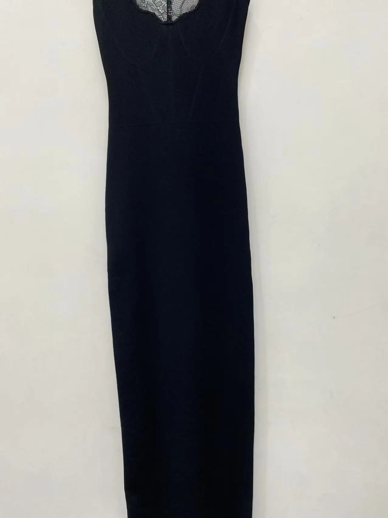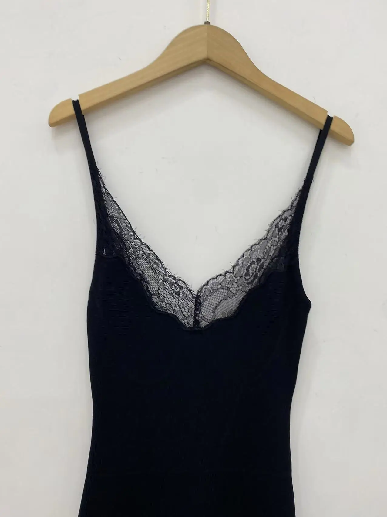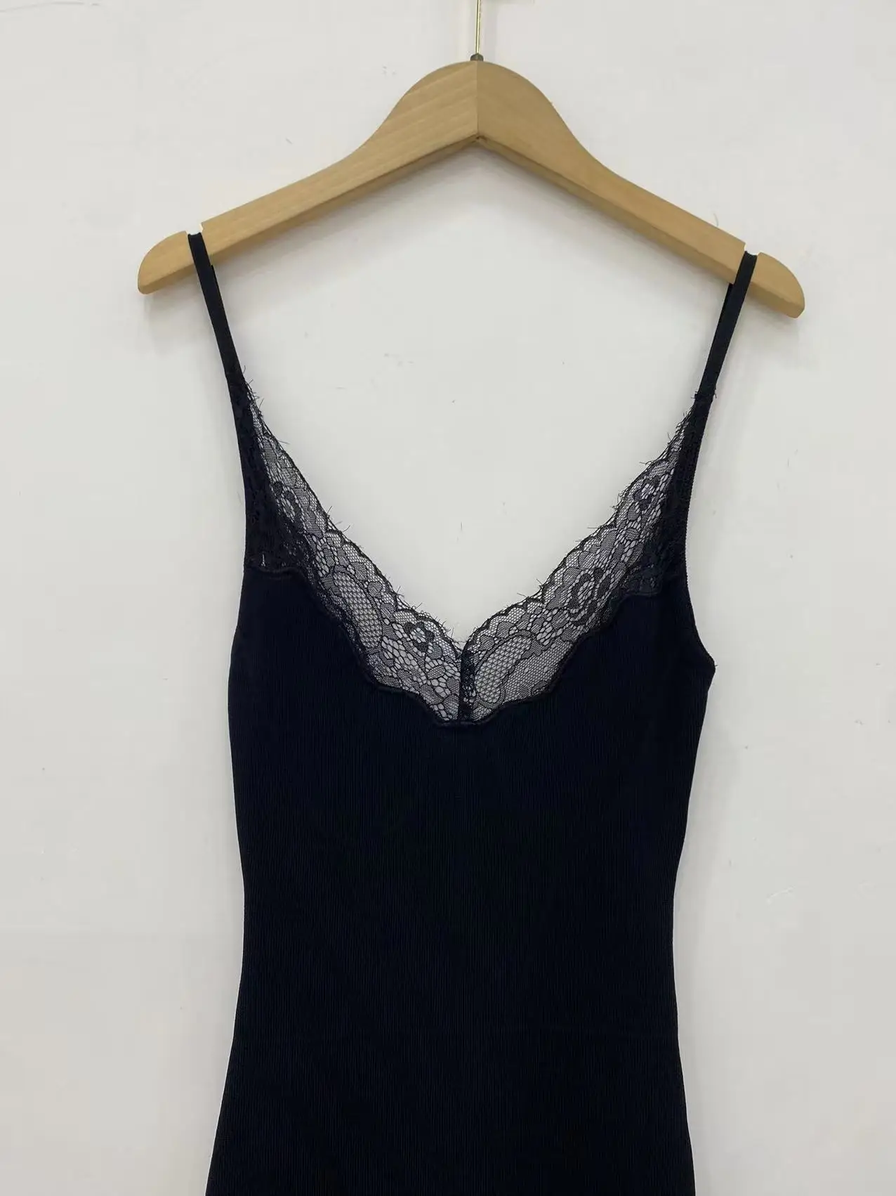 The 2025 summer classic black lace patchwork slimming and sexy body-hugging long dress with a halter top