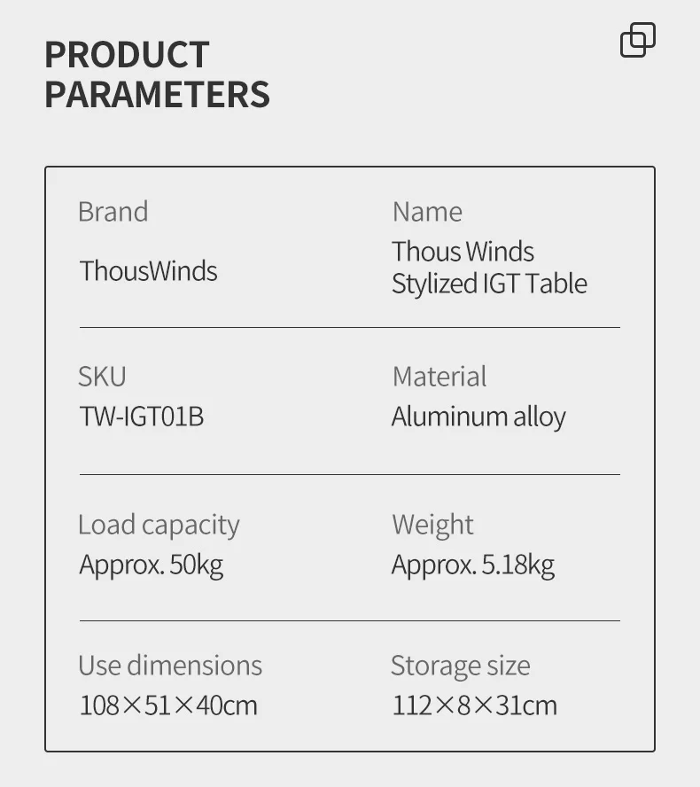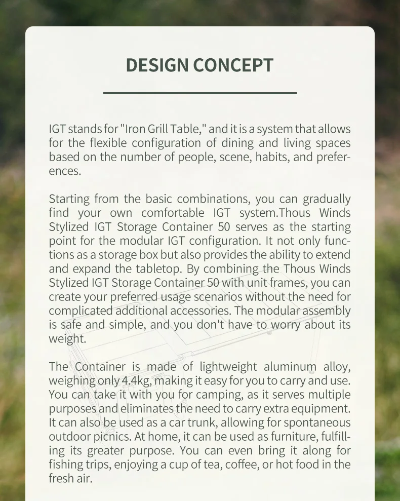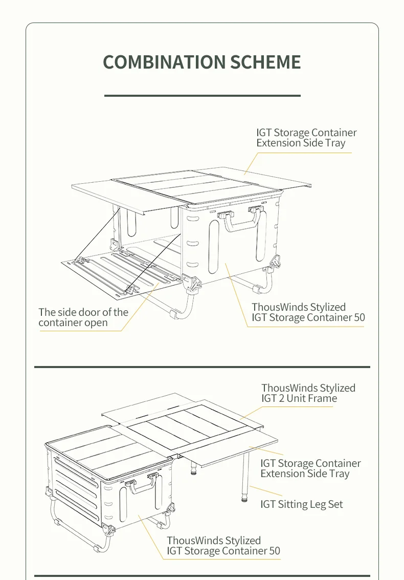 ThousWinds Stylized IGT Camp Kitchen Outdoor Storage Container Camping Table Lightweight IGT System Snow Peak Camping Supplies