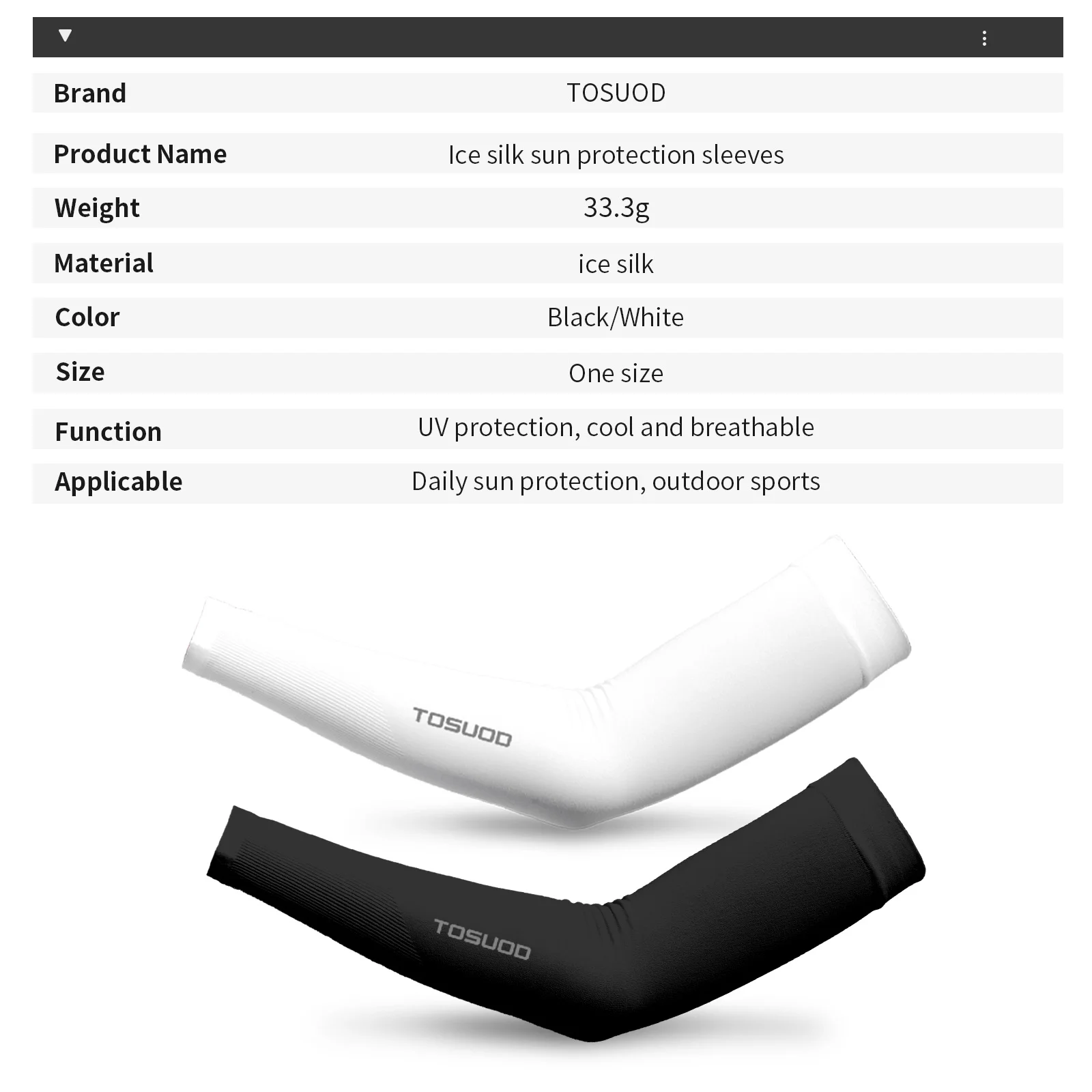 BREATHABLE ICE SILK FABRIC :Keeps arms cool, avoids stuffiness in hot weather.