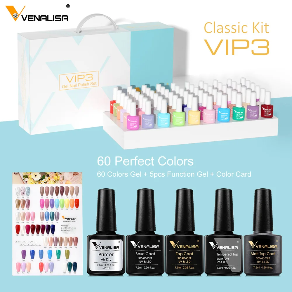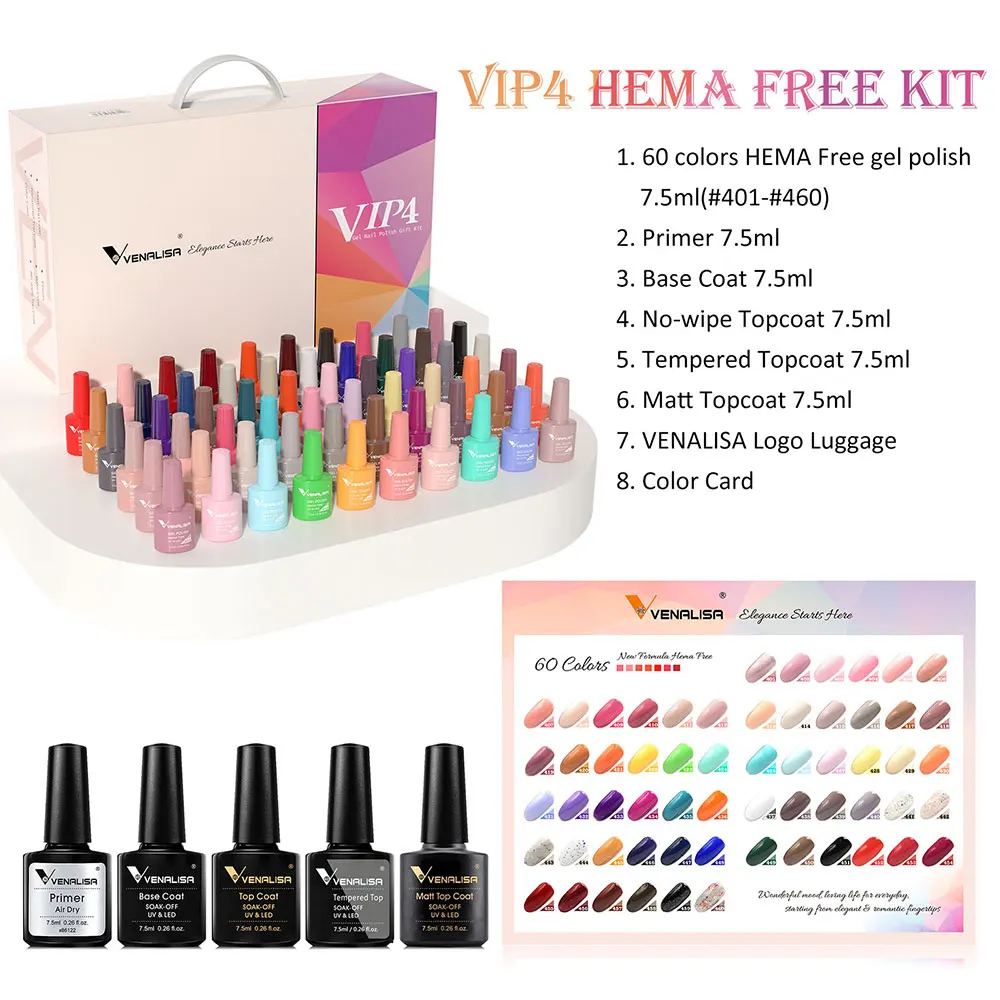 TPO/HEMA FREE VENALISA VIP Kit Nail Gel Polish Branded Suitcase Gel Kit Perfect Pigment Professional Nail Art Long Lasting Gel