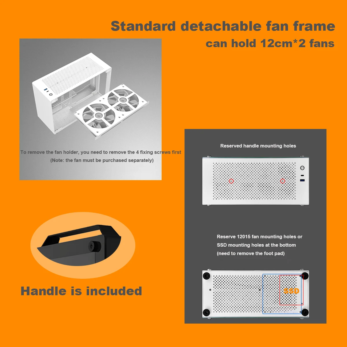 The top of the case can accommodate two 120mm x 25mm fans, while the bottom can house an additional 120mm x 15mm fan when an SFX power supply is installed.