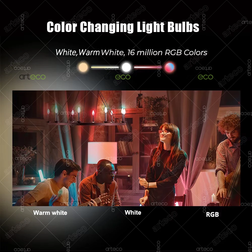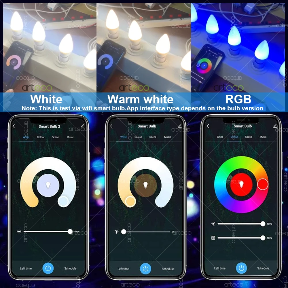 1) APP remote control: Tuya Smart APP/Smart Life APP can be used to remotely control the bulb on and off. change the light color, the brightness.etc.