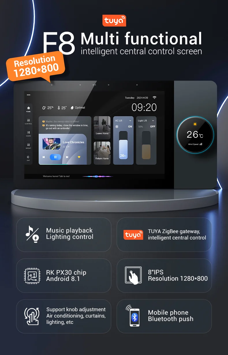 Tuya Smart Home 6-inch F6 Zigbee Gateway Wifi Multifunctional Music Host Touch Central Control Switch Panel