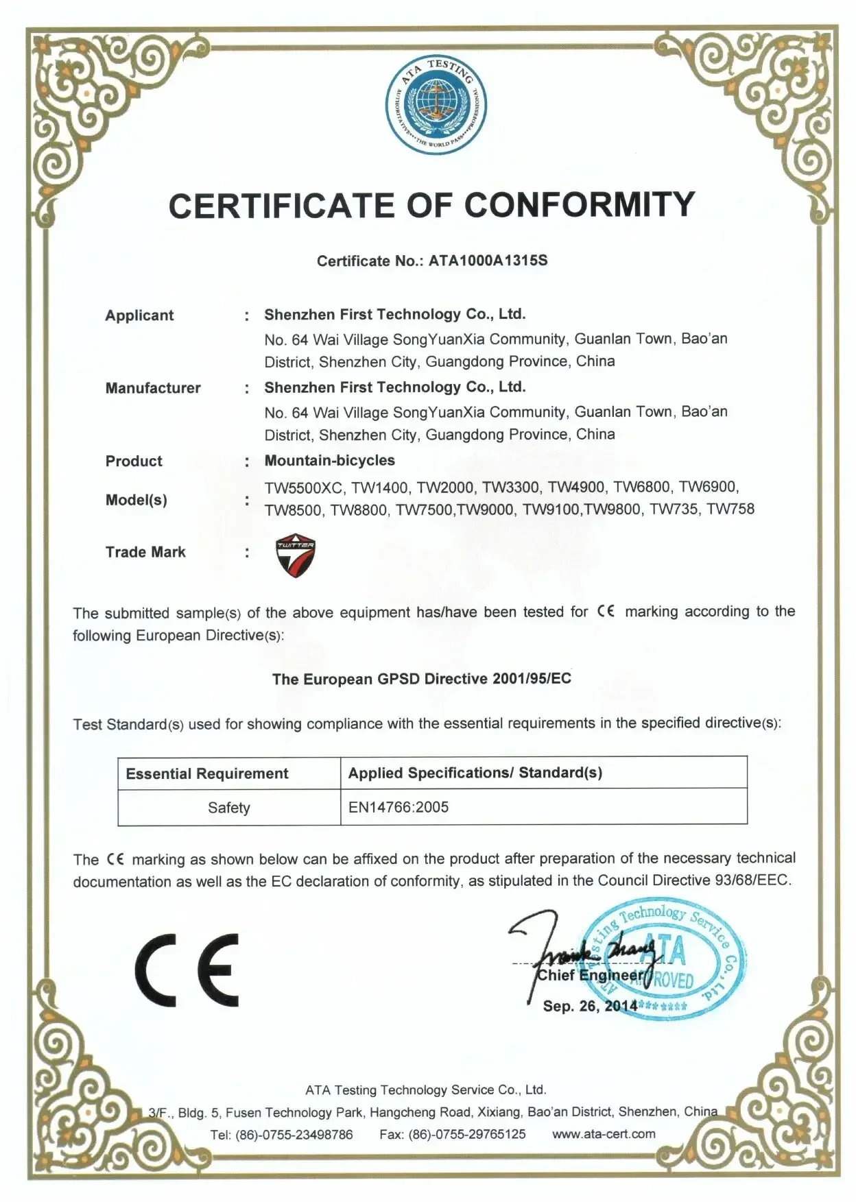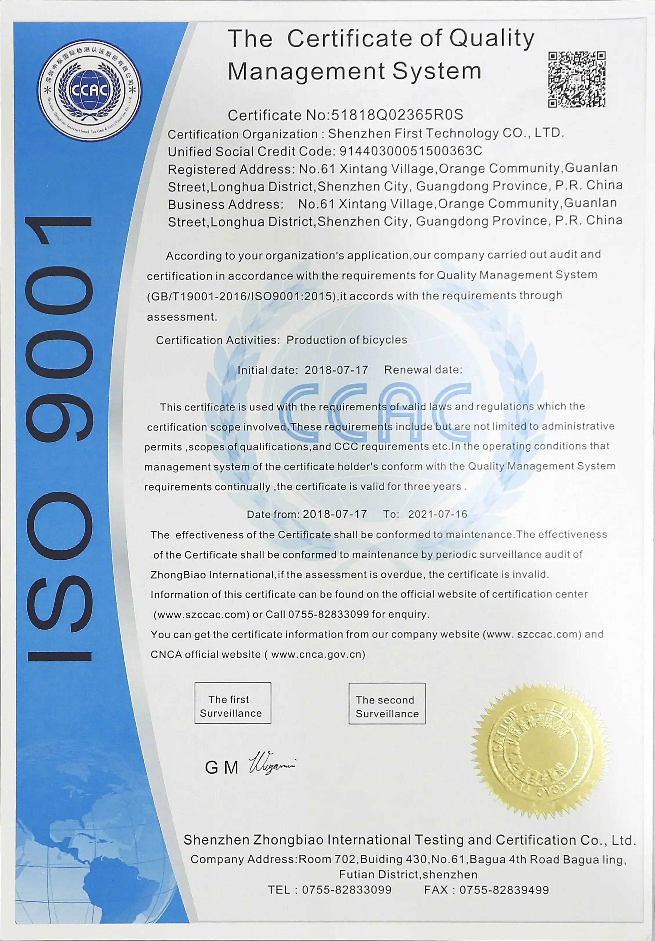 • Certificate: CE ISO9001