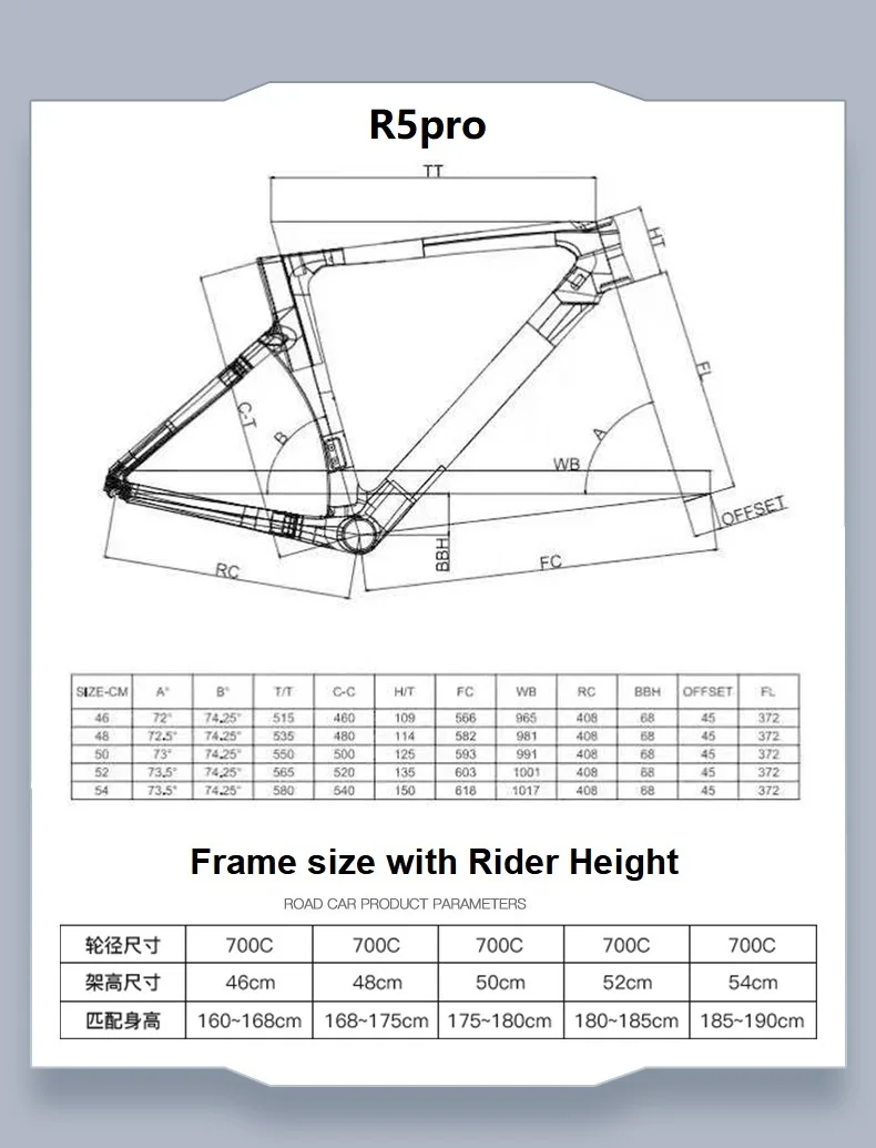 R5pro(Disc&thru-axle 12×142), high modulus Carbon fiber,Aero-Racing,Inner-Cables, Matte or Gloss&UV decals
