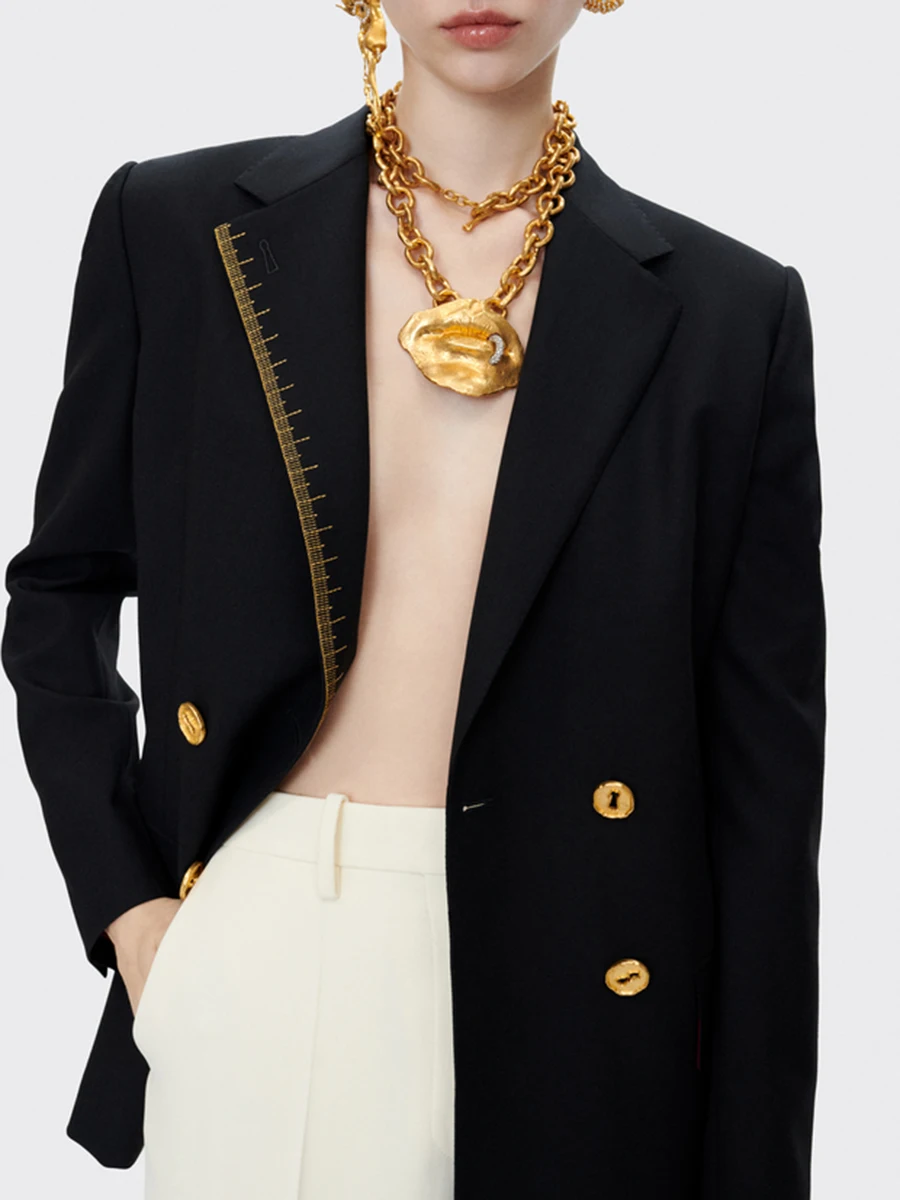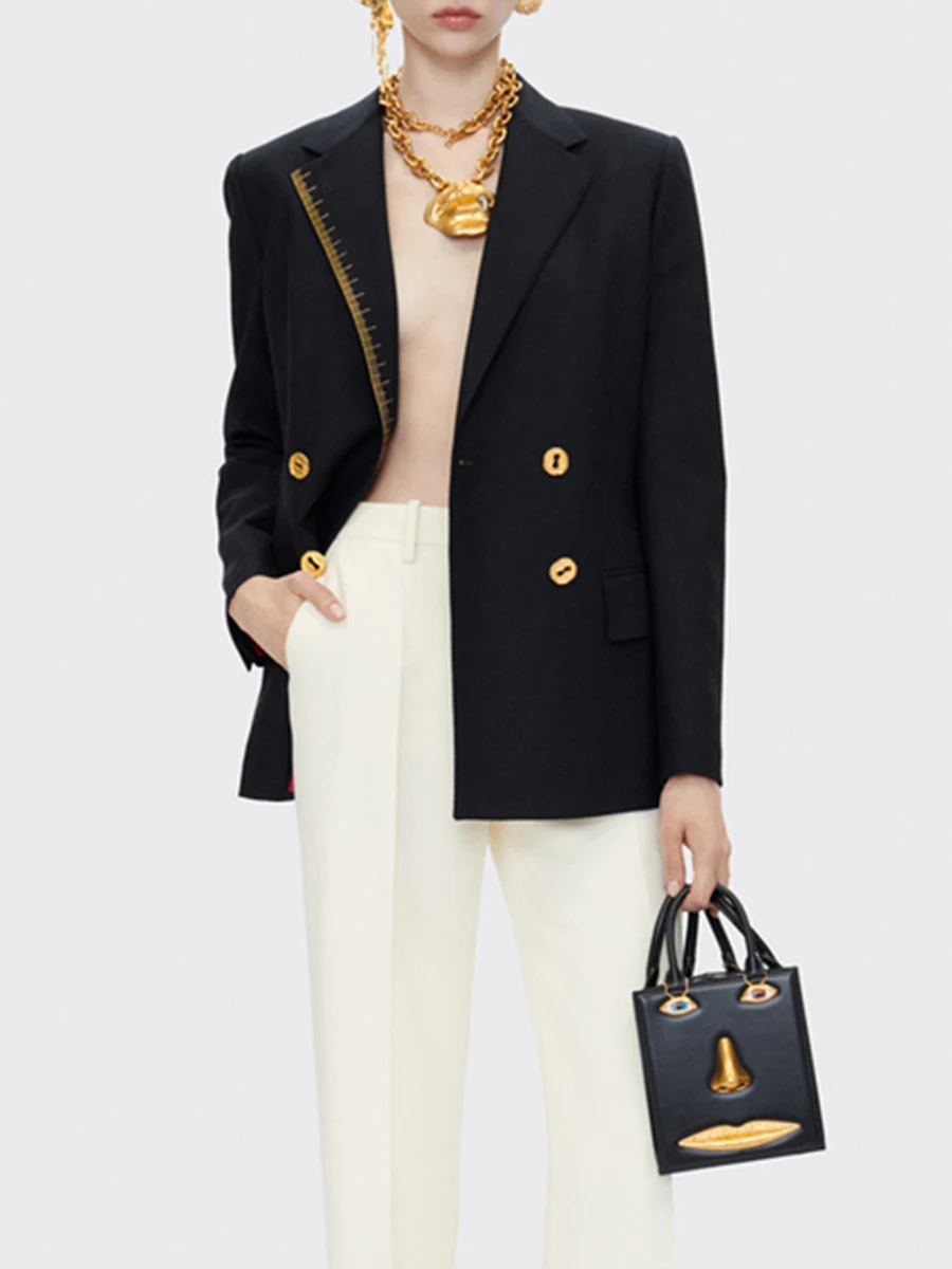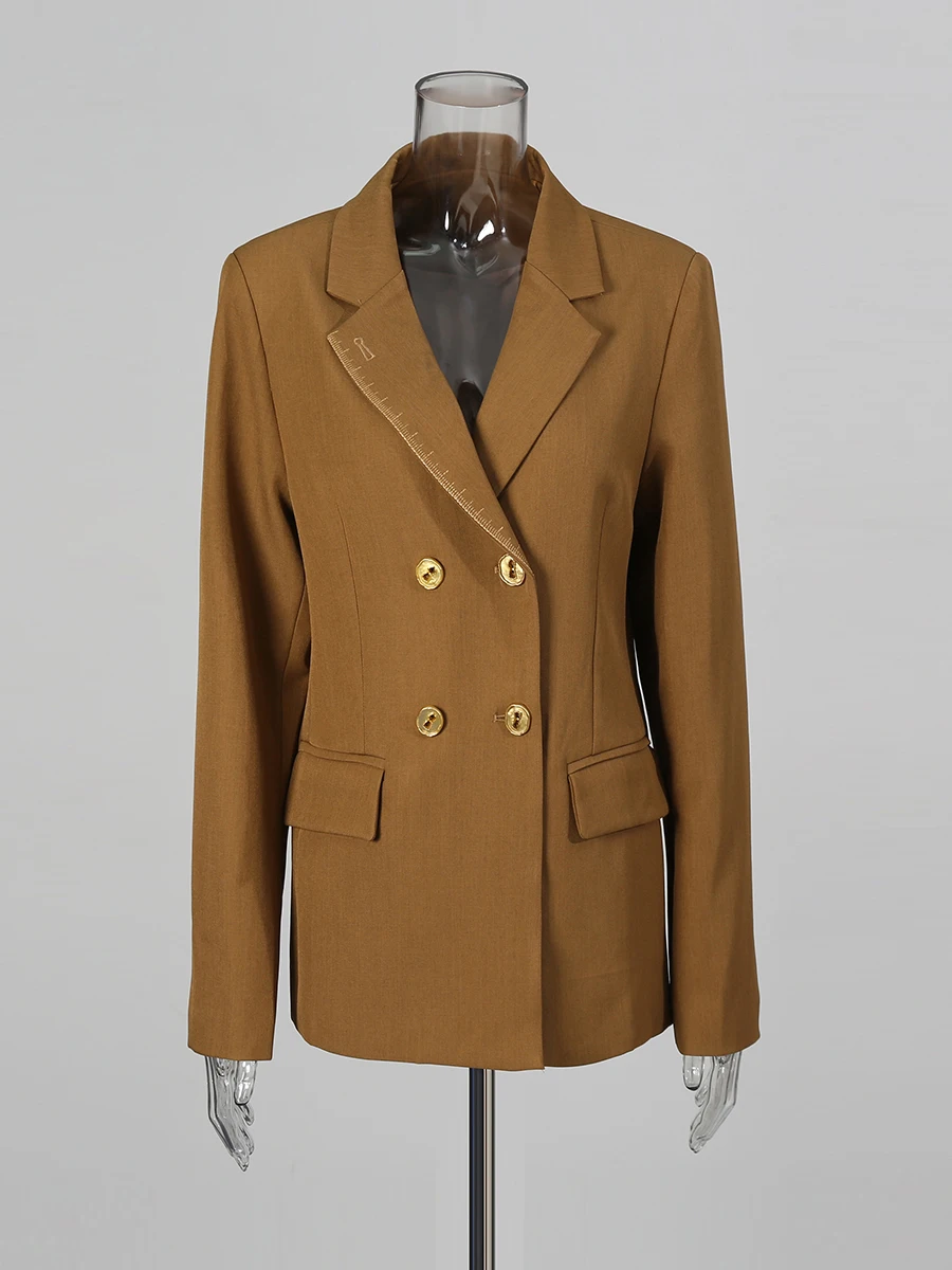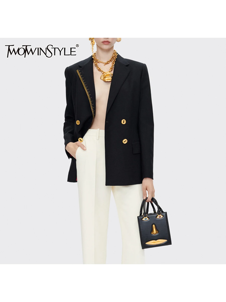 TWOTWINSTYLE Solid Spliced Button Fashion Blazers for Women Lapel Long Sleeves Patchwork Embroidery Blazer Female Clothing New