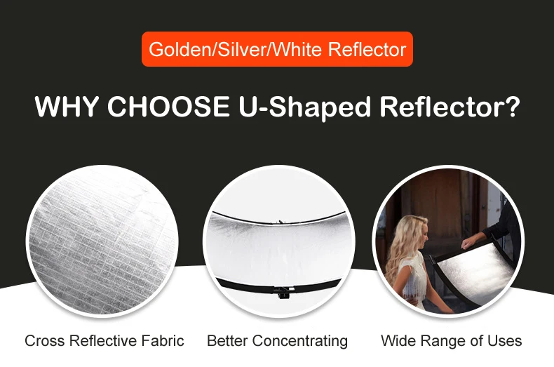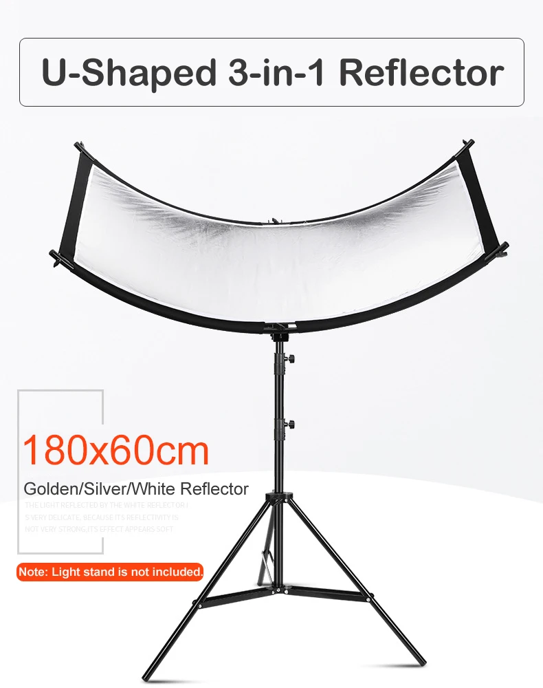 U-Shaped 180*60cm 3 in 1 Photography Reflector Collapsibe Light Reflective Cloth Soft Diffuser for Camera Video Studio Photo