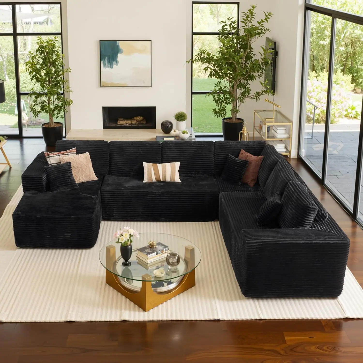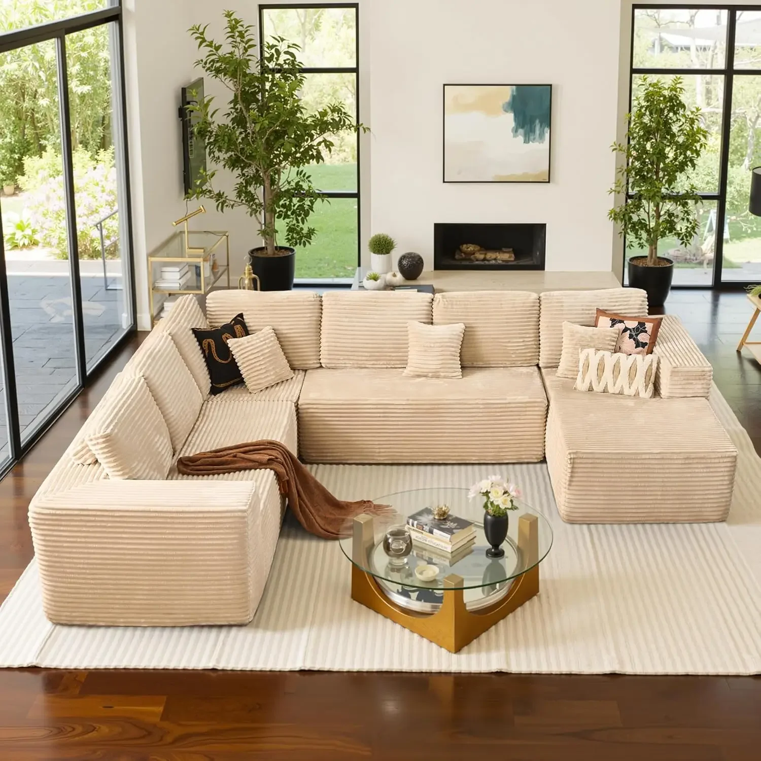 U Shaped Sofa Boneless Couch with Chaise 135″ Cloud Modular Sectional Couch for Living Room Big Comfy Couches Set furniture