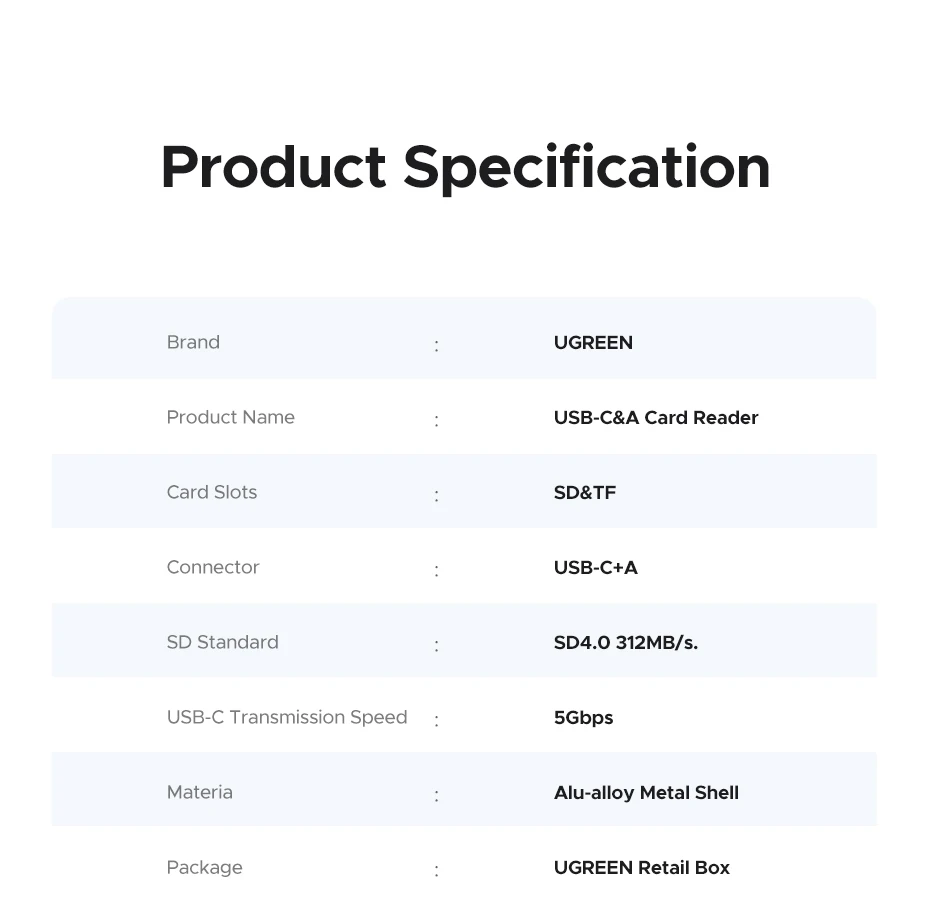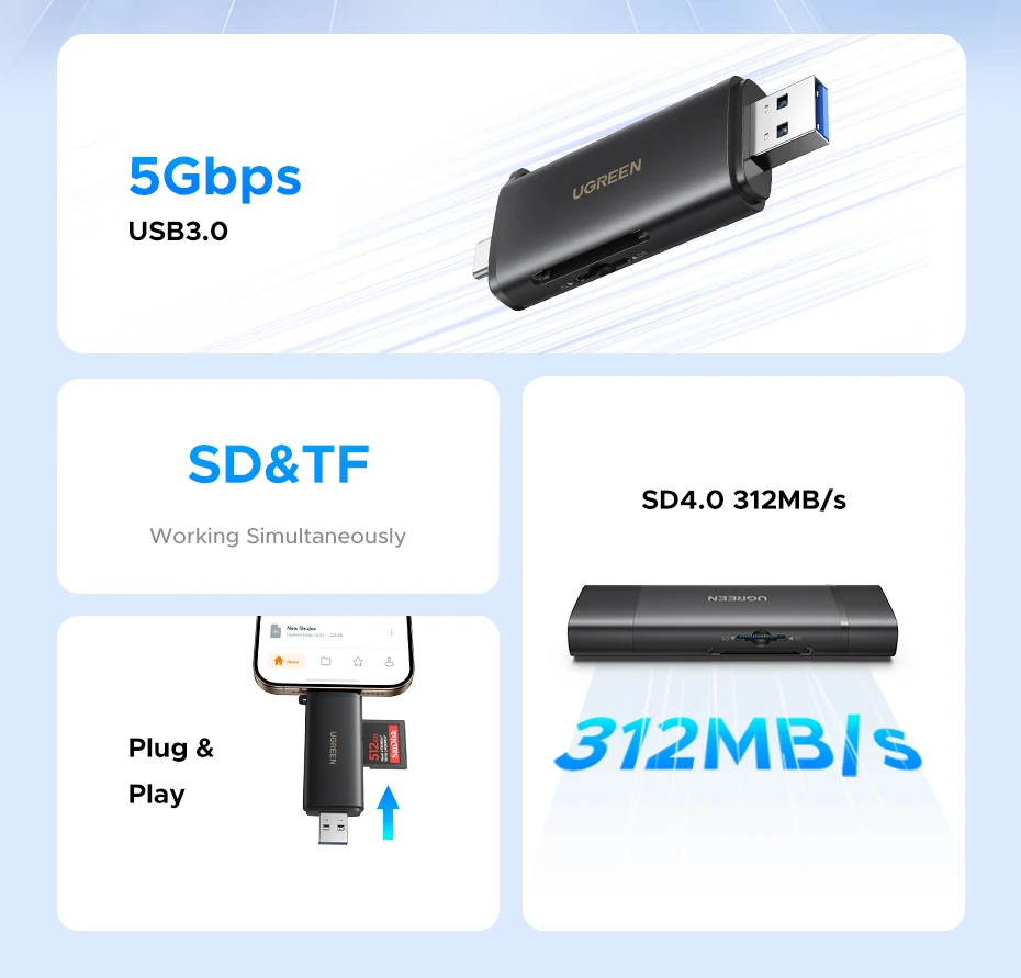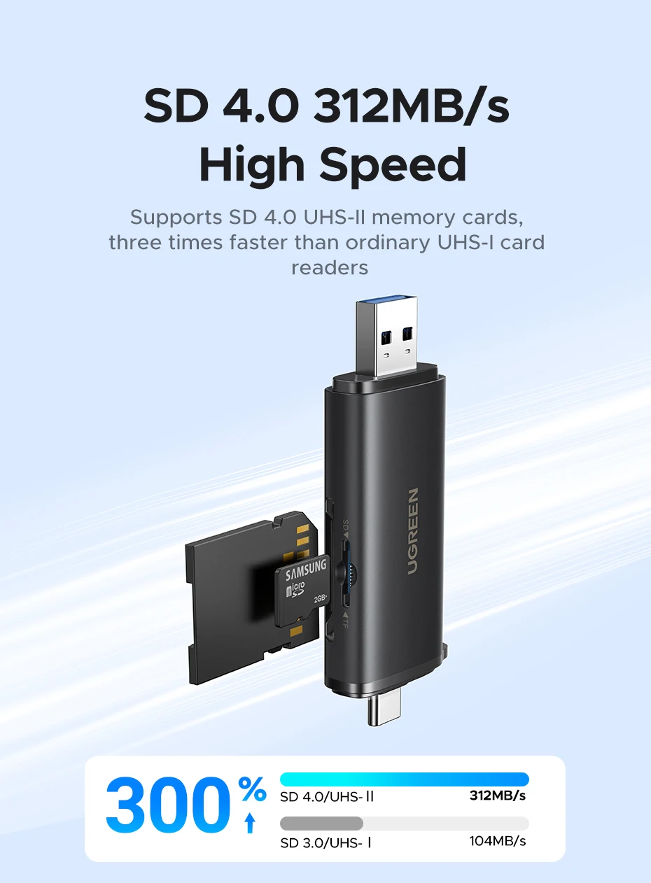 UGREEN USB C SD 4.0 Card Reader USB Memory Card Reader 312MB/s USB3.0&USB C to SD Micro SD TF Card for PC Laptop UHS-II/UHS-I