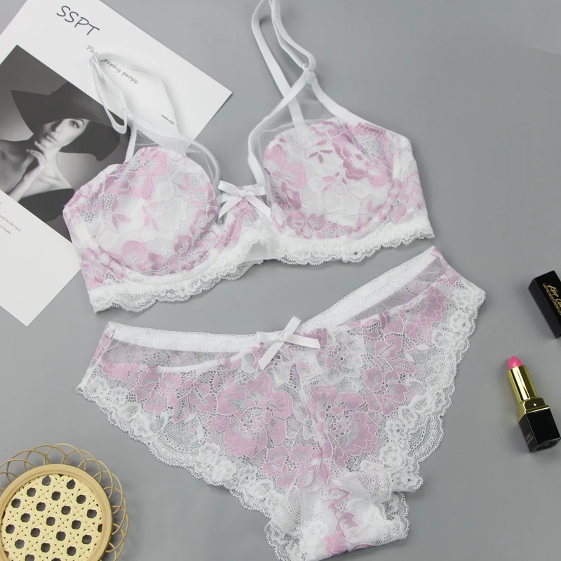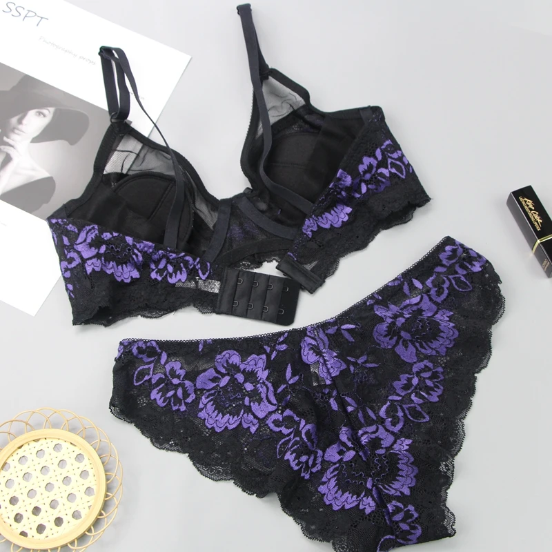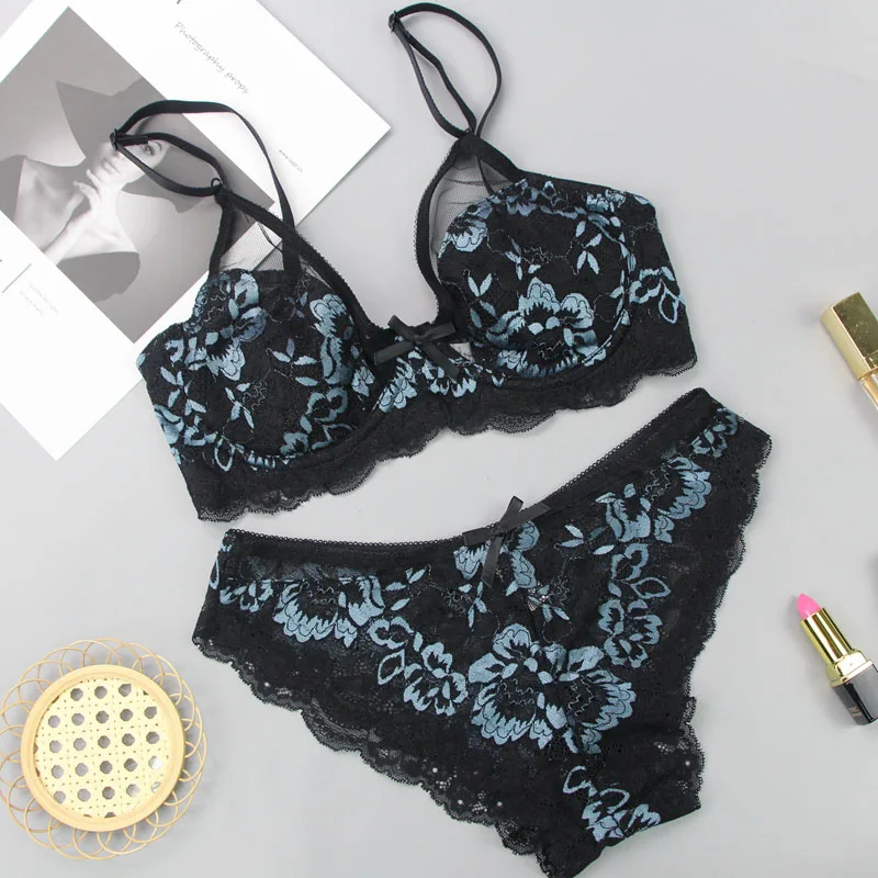 Ultra-Thin Thick Bra Sets 34/75 36/80 38/85 40/90 42/95 44/100 46/105 BCDE Cup Underwear Transparent Embroidery Lace Lingerie