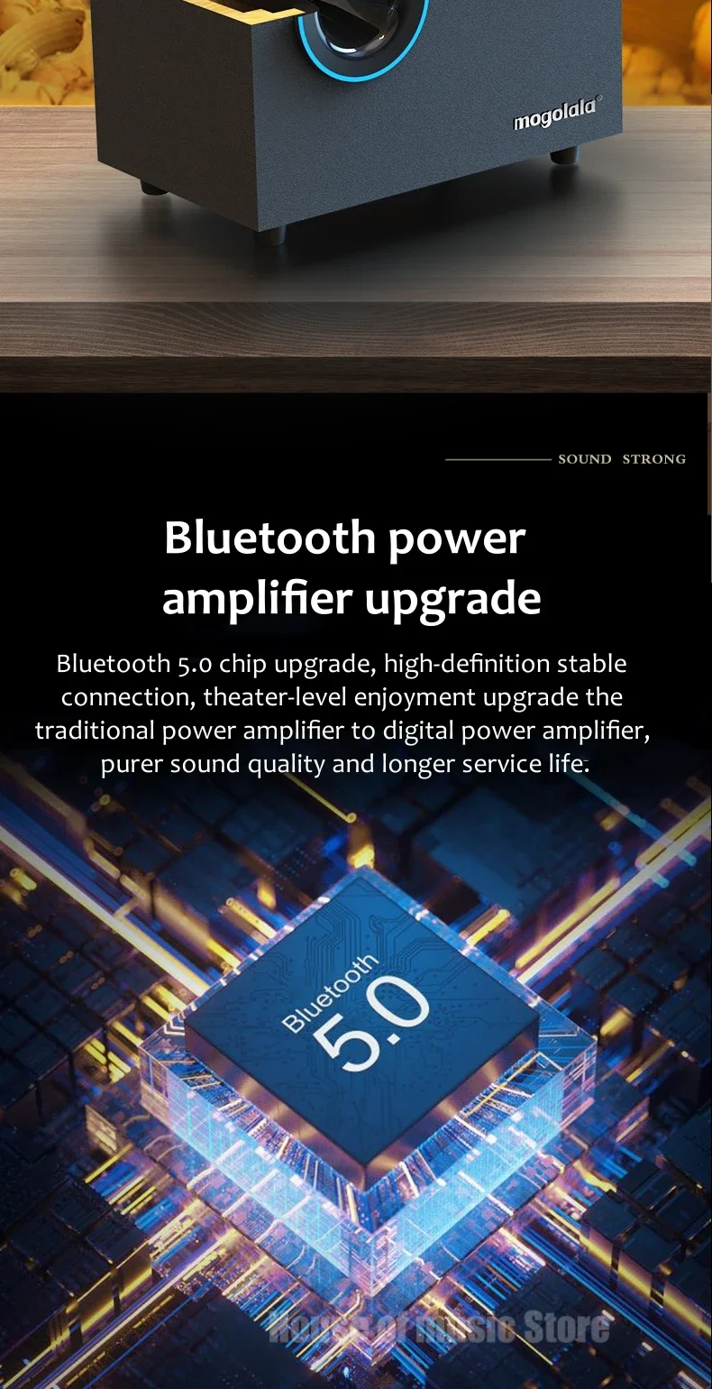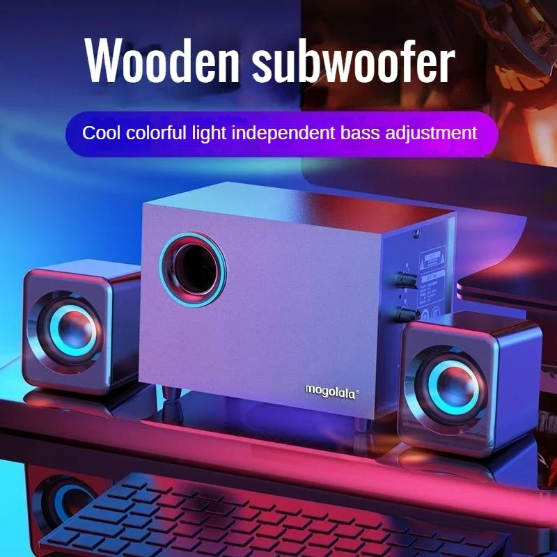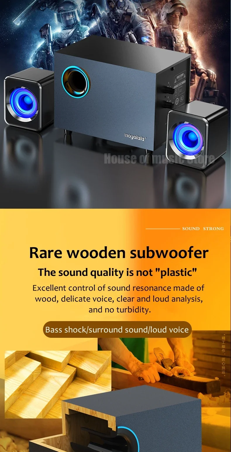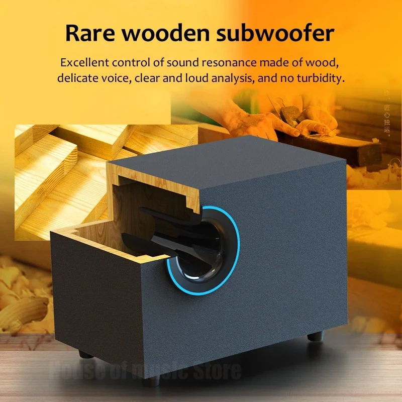 USB Wired Bluetooth Computer Speaker Home 2.1 Channel Wooden Desktop Subwoofer Active Audio 3D Surround Sound Bass Game Speakers