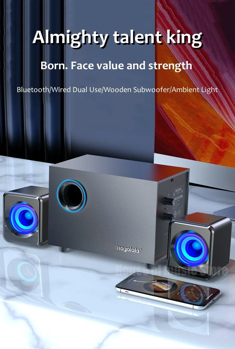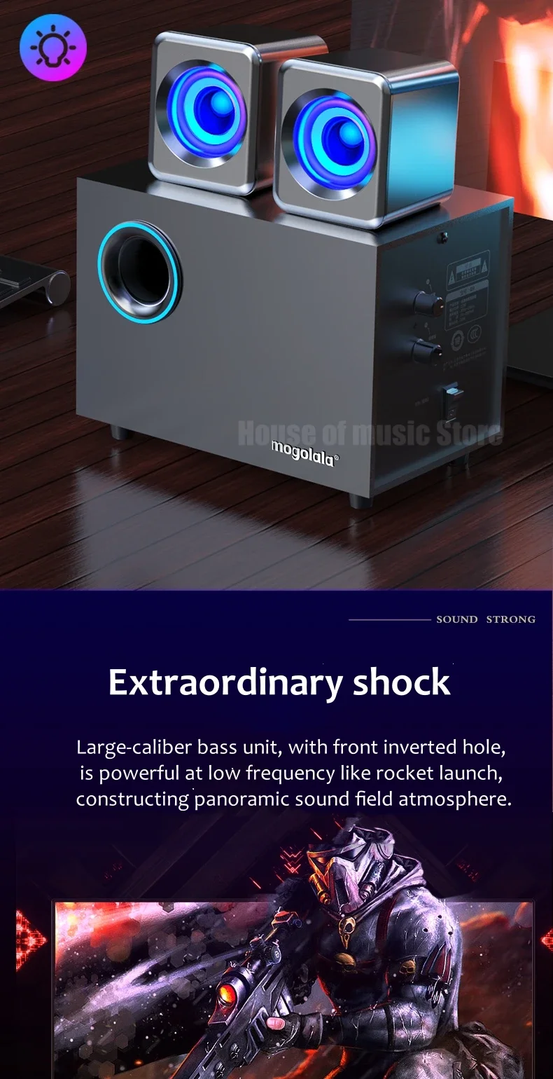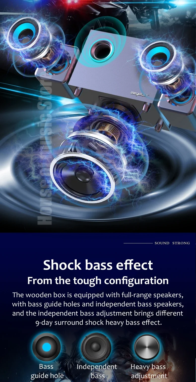 USB Wired Bluetooth Computer Speaker Home 2.1 Channel Wooden Desktop Subwoofer Active Audio 3D Surround Sound Bass Game Speakers