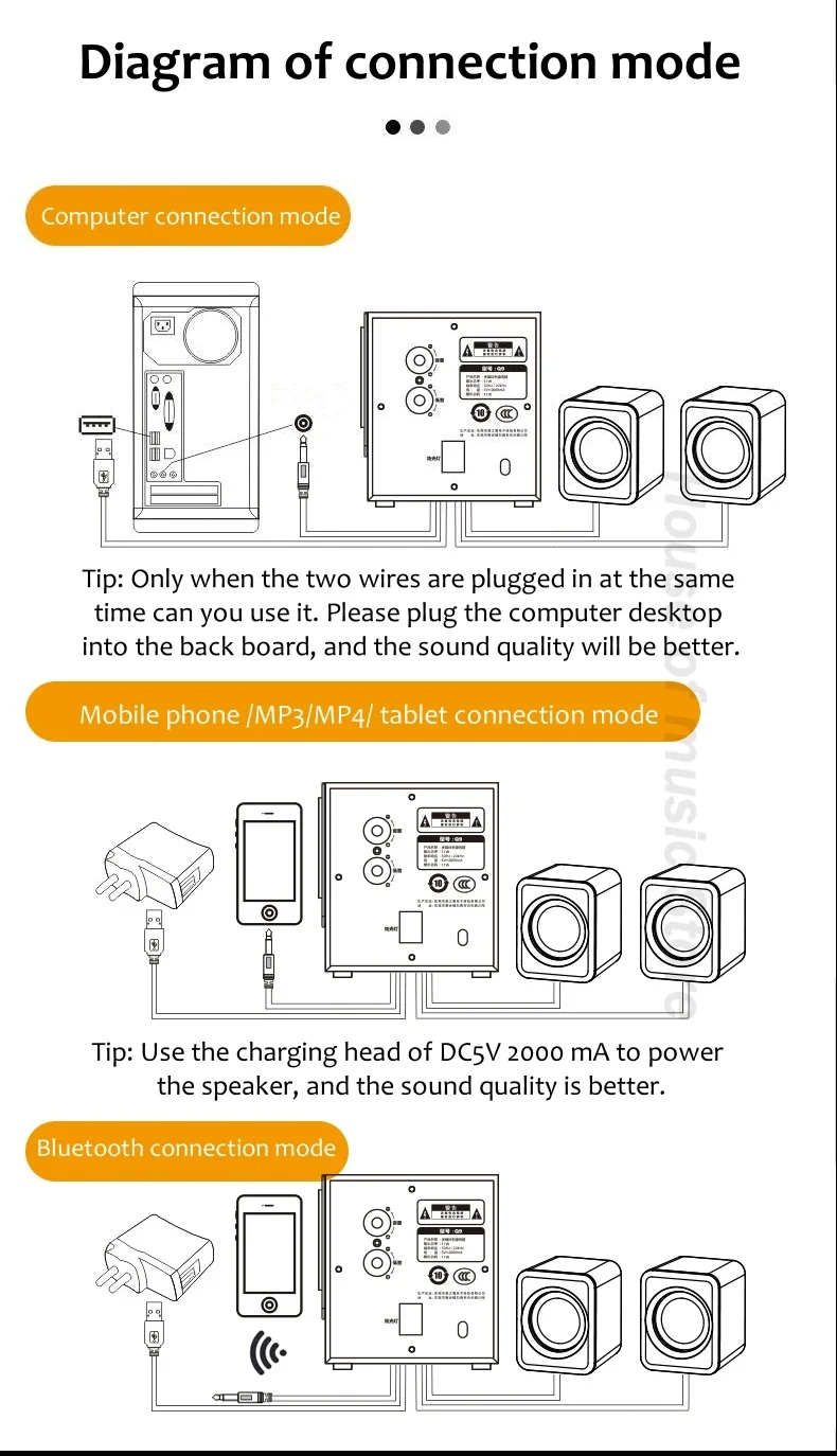 Speaker specifications: 3-inch bass unit+2-inch tweeter unit