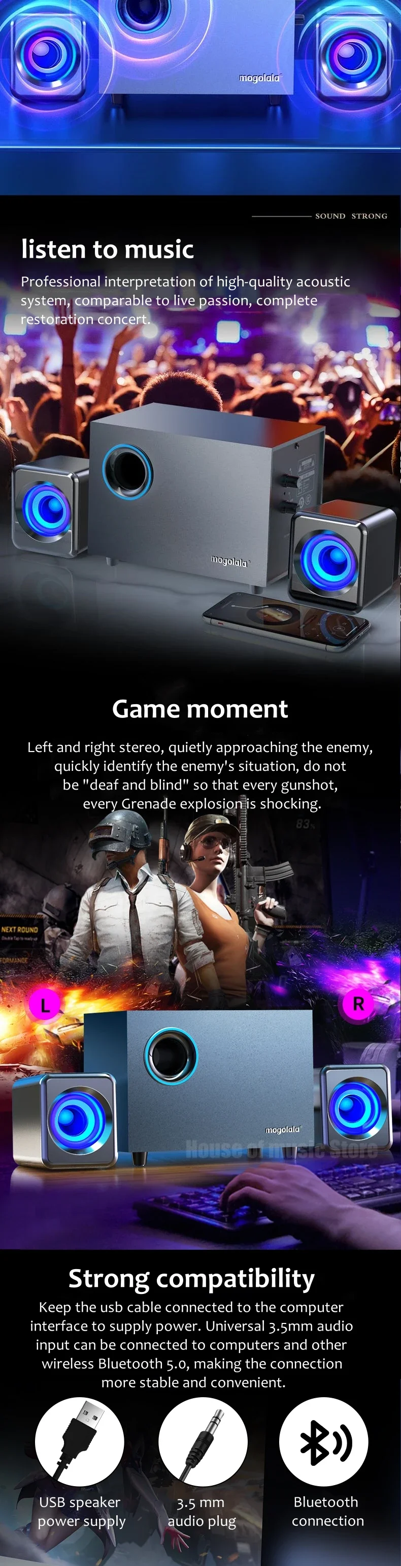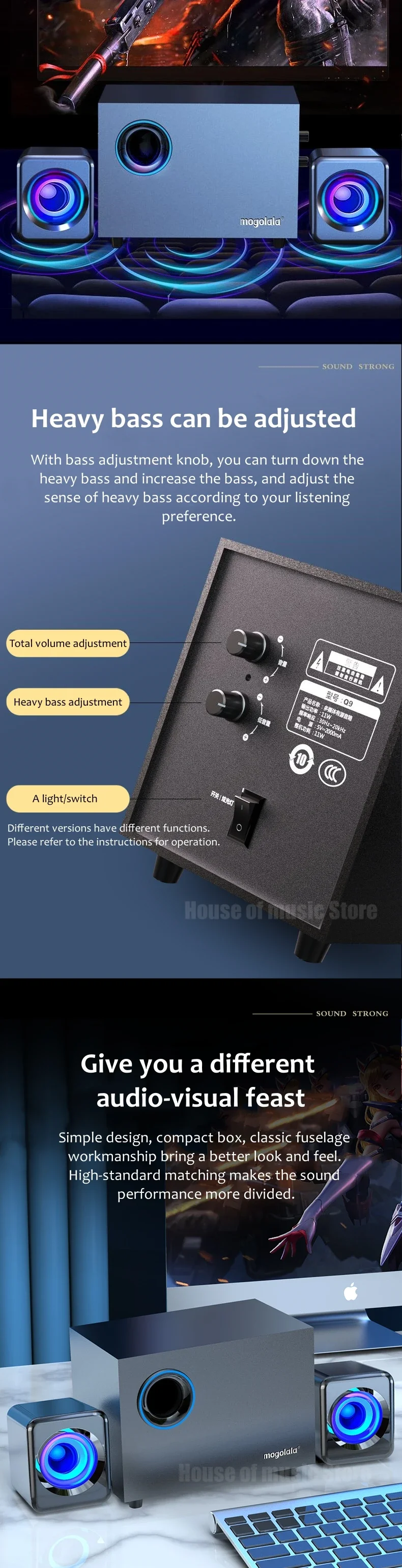 - Function4: Dual speakers, independent volume adjustment