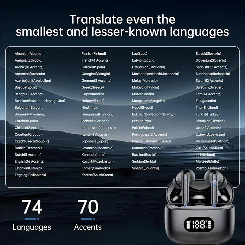 UYUXIO Real Time AI Translating Earbuds Earphone with 144 Languages Translation Headphone for Business Traveling TWS Ear Buds