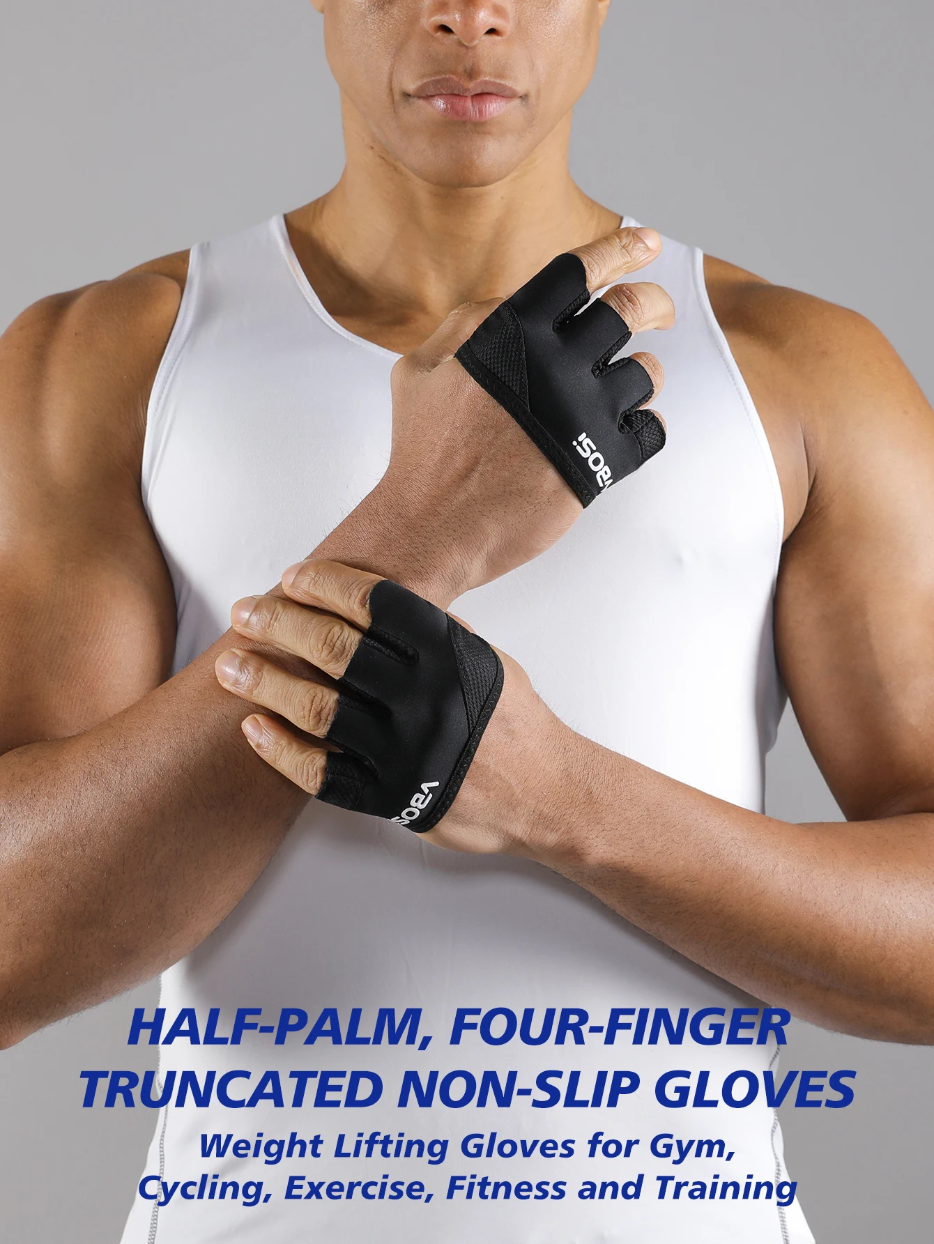 VBOSi Lightweight Four-Finger Workout Gloves Non-Slip Grip for Fitness Weightlifting Training for Men And Women
