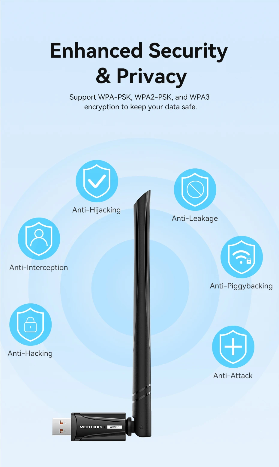 - Feature 1: Vention USB Wifi Adapter