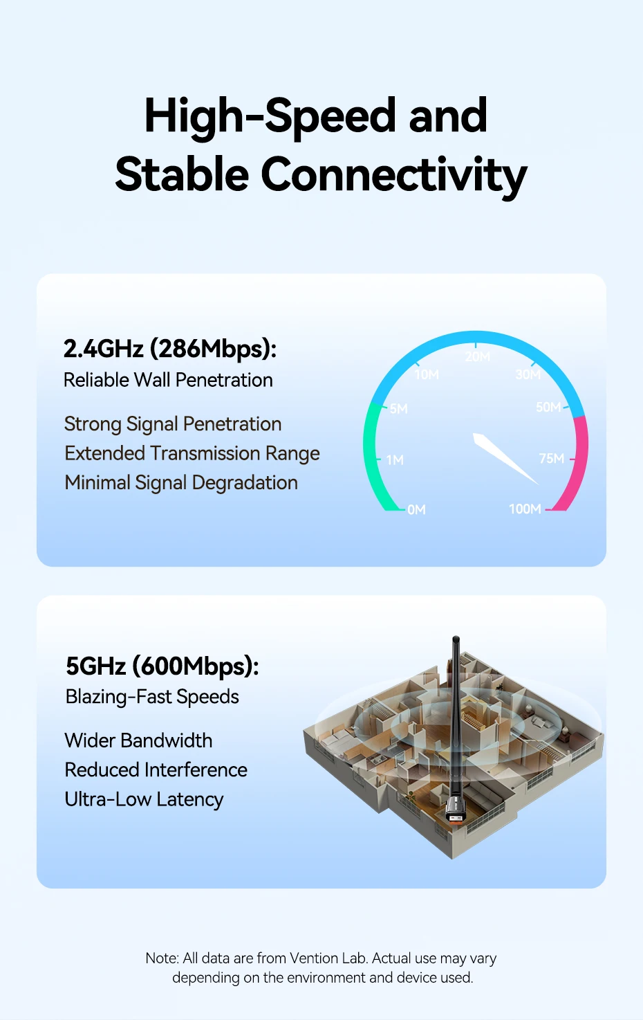 2.4GHz (286Mbps): Reliable Wall Penetration