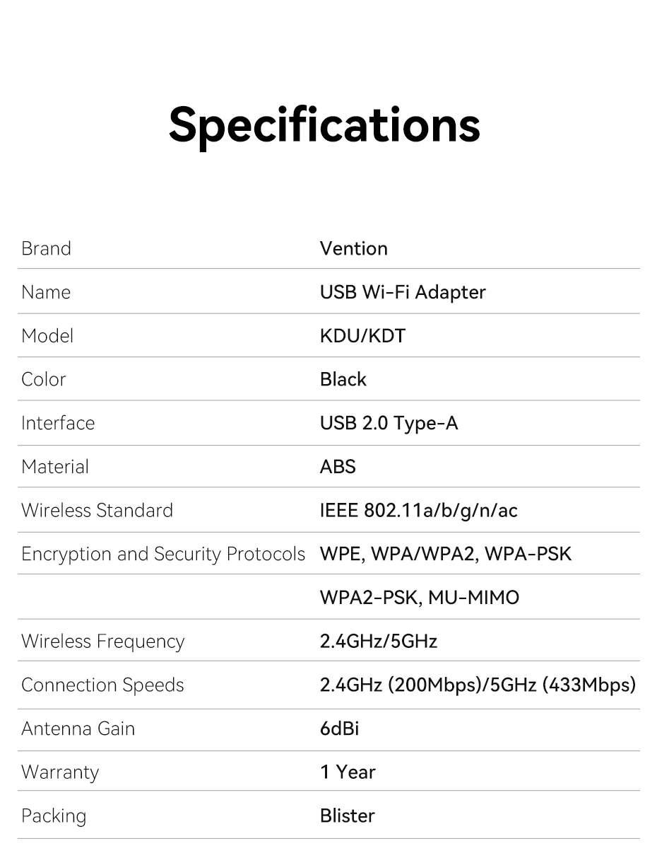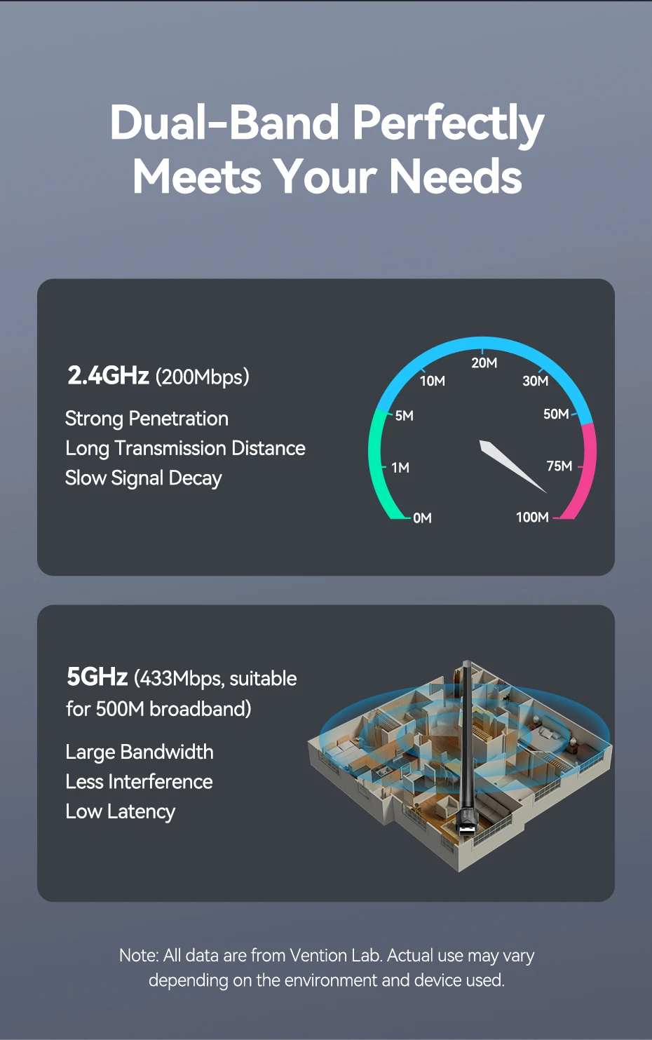 Vention WiFi Adapter AC650 WiFi5 5G&2.4G USB WiFi Card Dongle for PC Desktop Laptop Wifi Antenna USB Ethernet Network Card