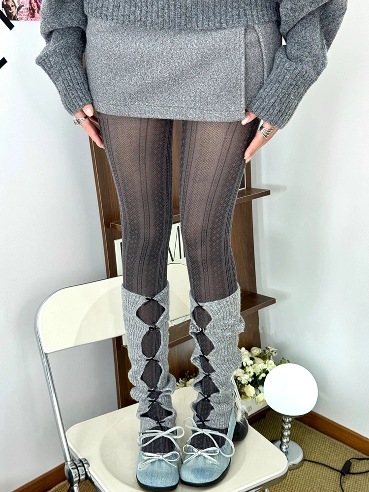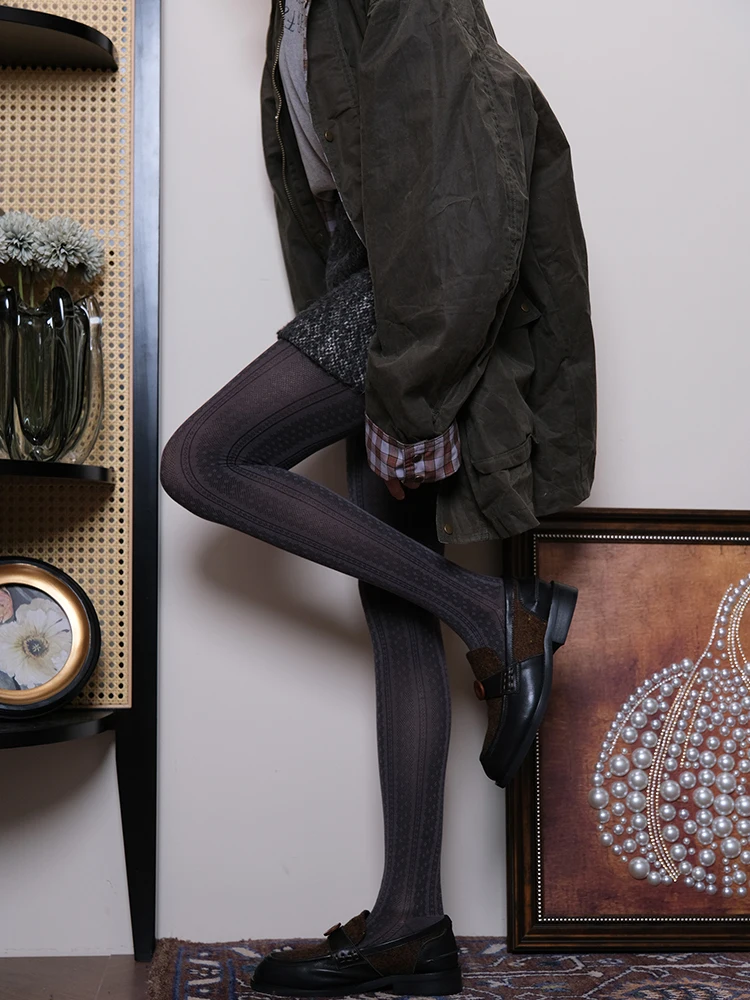 Vintage Striped Dot Tights 2025 Women Autumn Winter Basic Streetwear Pantyhose Casual Stocking