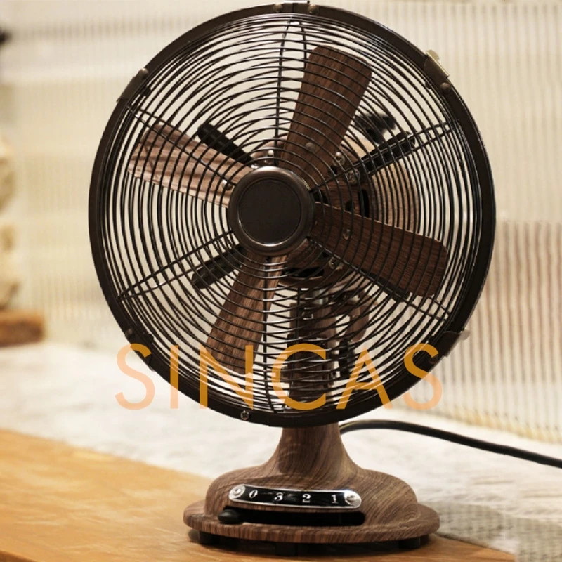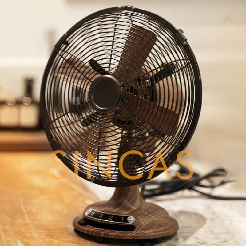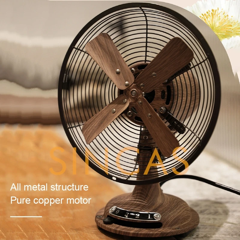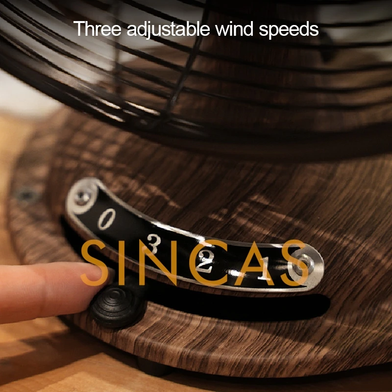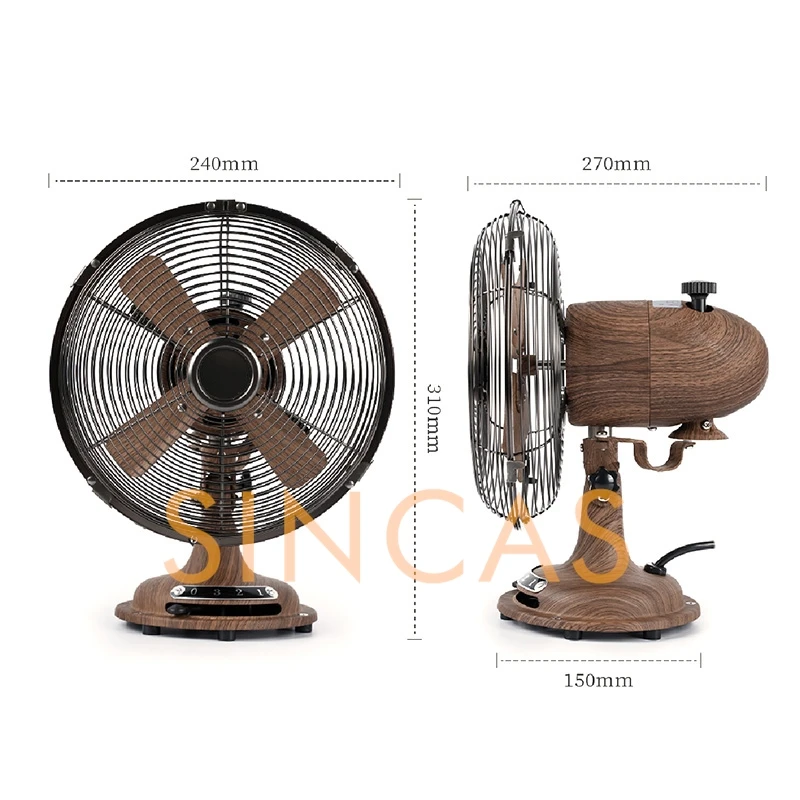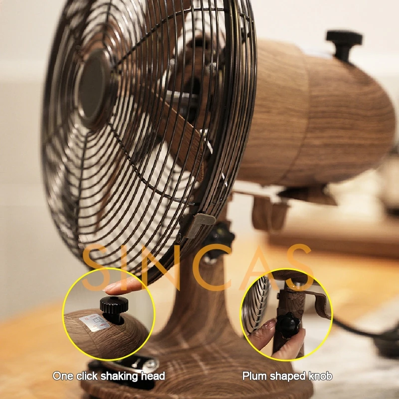 Vintage Woodgrain Oscillating Table Fan 8-Inch Retro Compact Space-Saving Durable Low Noise Desktop Office Bedroom Living Room