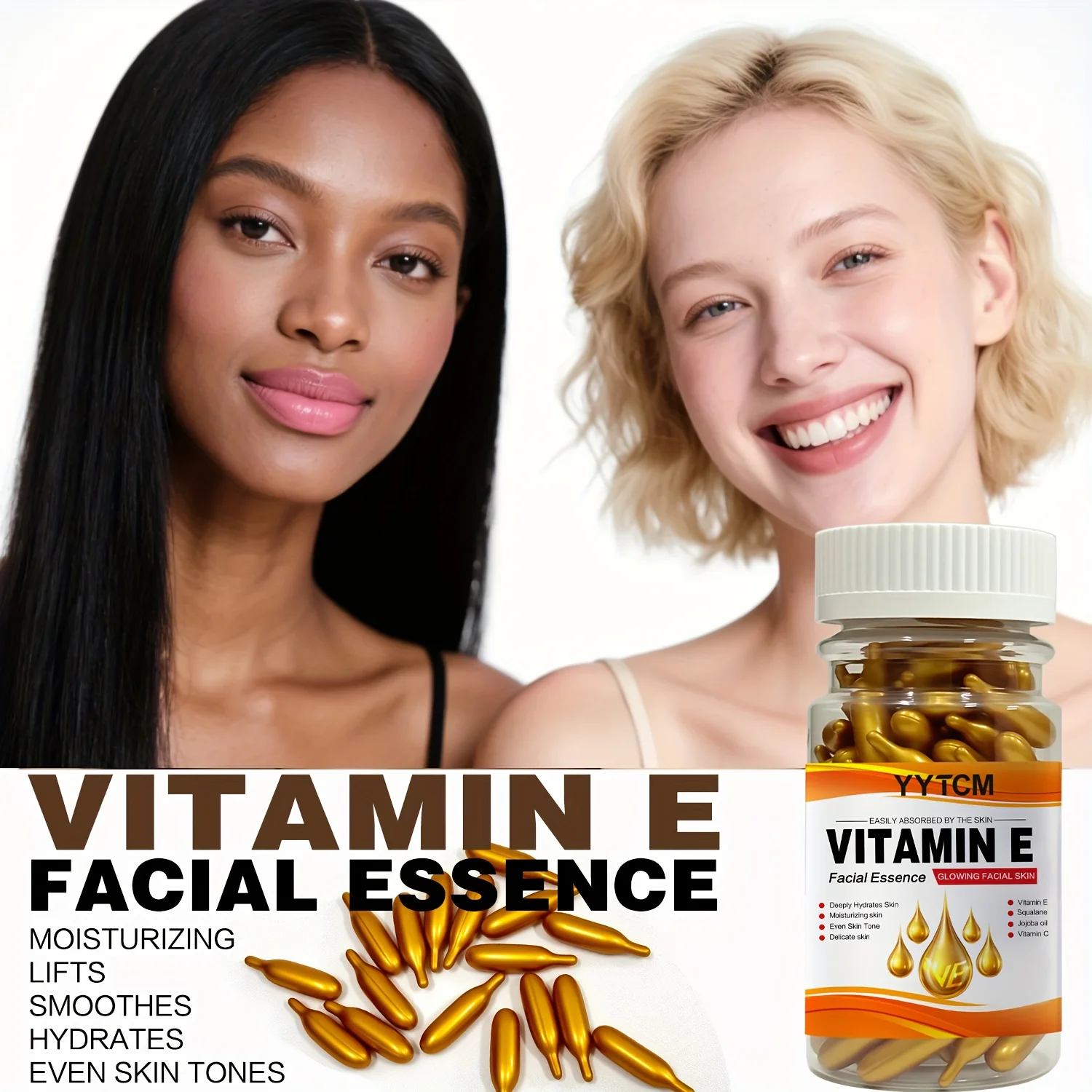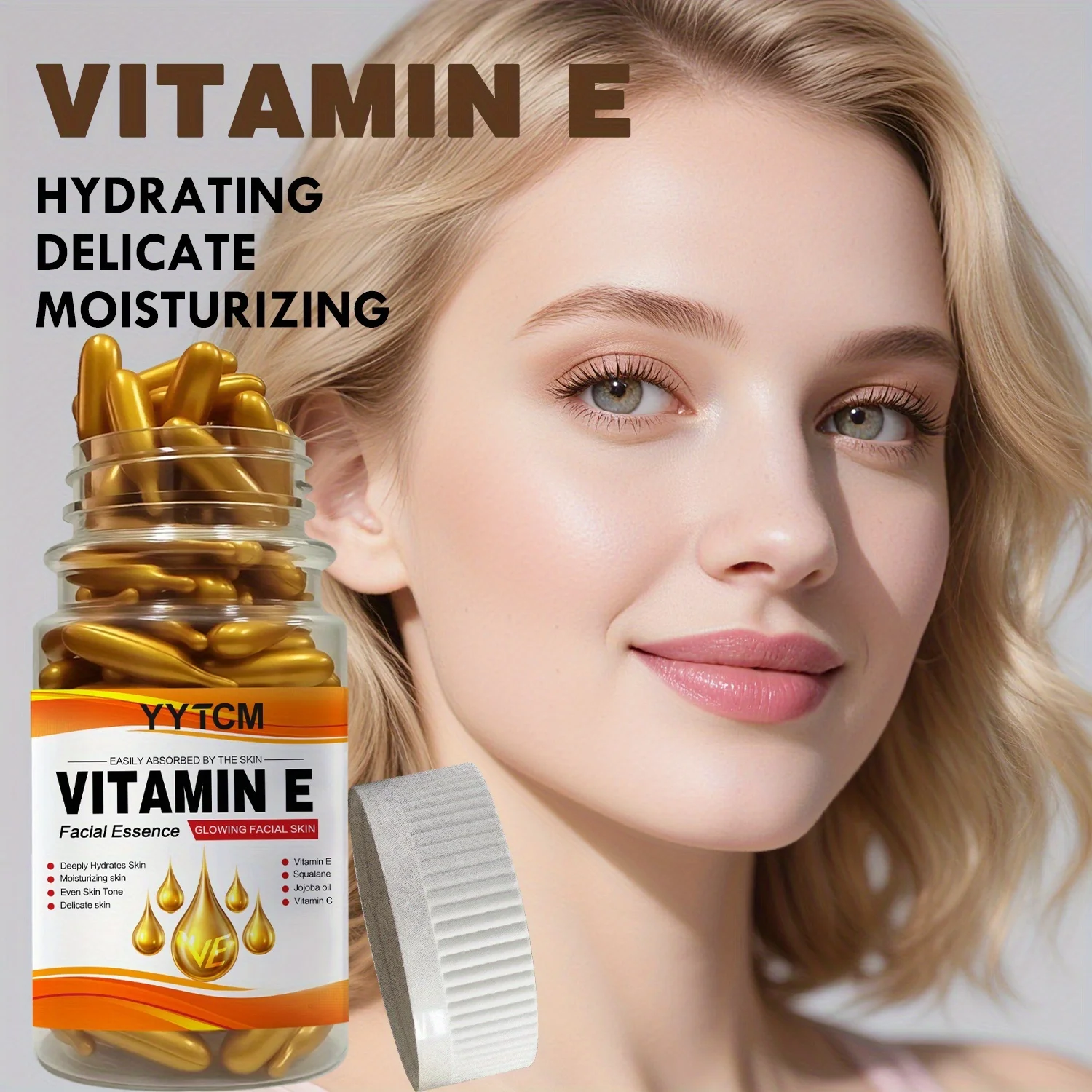 Vitamin E Deep Moisturizing Capsule Essence, Hydrates and Smoothes the Skin, Contains Plant Squalane, Vitamin C, Deep Hydrating and Brightening Skin Essence (0.4g X 90 Capsules)/Bottle-1 Bottle