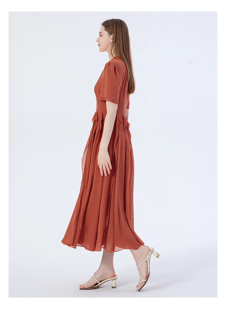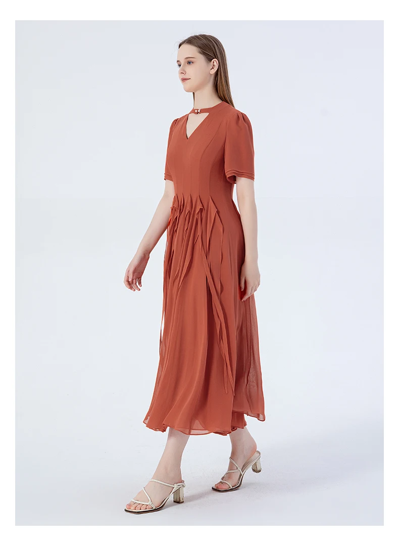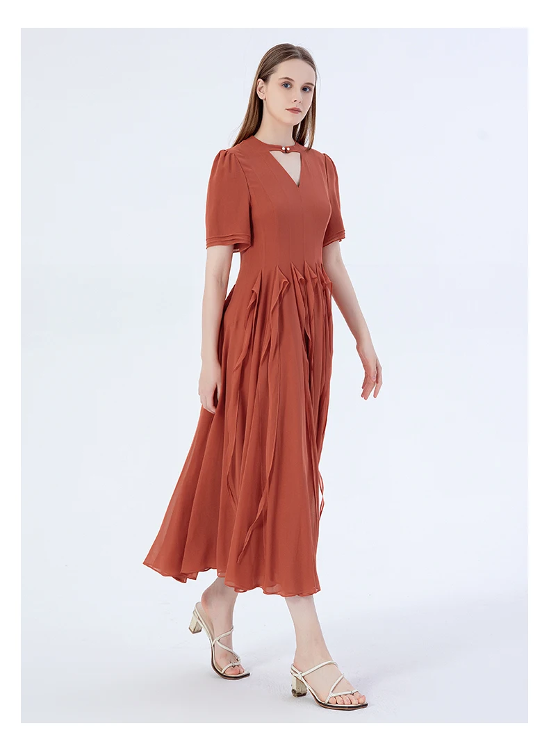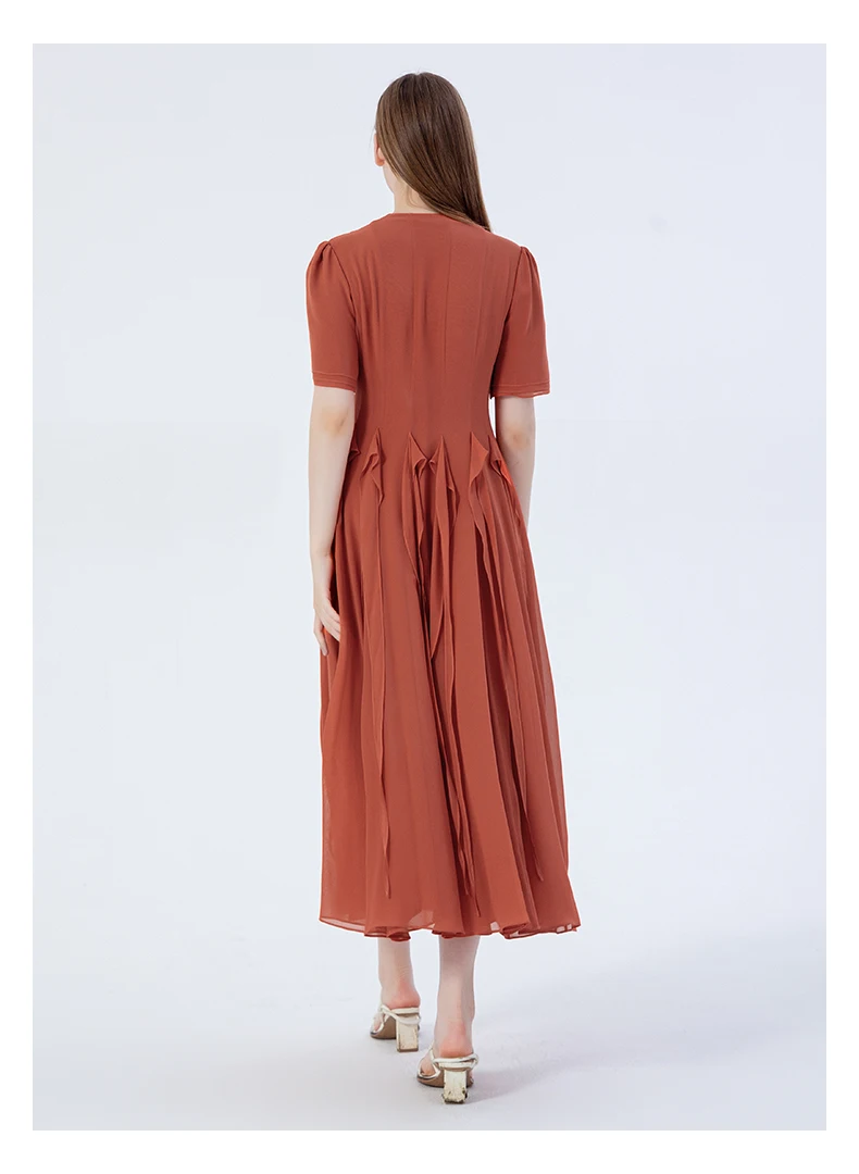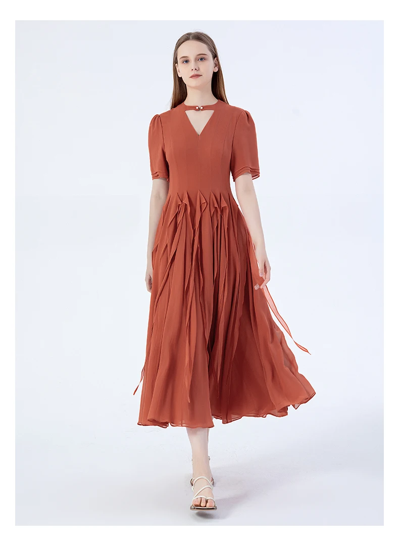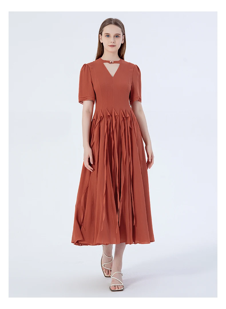 VOA Silk Three-layer Georgette Studded Hollow Three-dimensional Ribbon Long Dress Elegant Maxi Dresses for Women AE2220