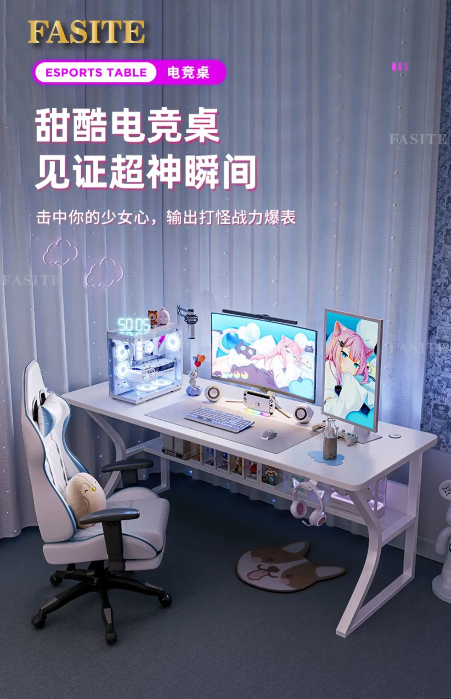 White gaming table computer desk desktop home desk chair set simple bedroom desk