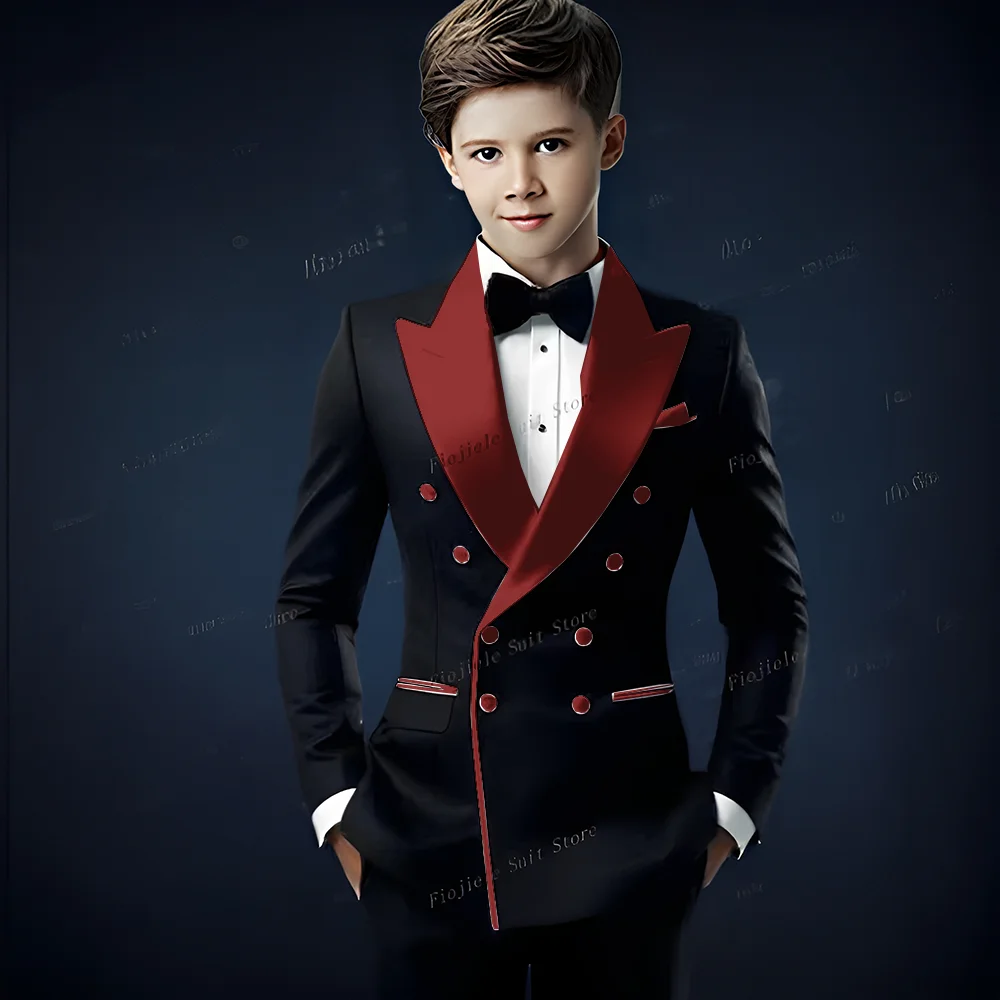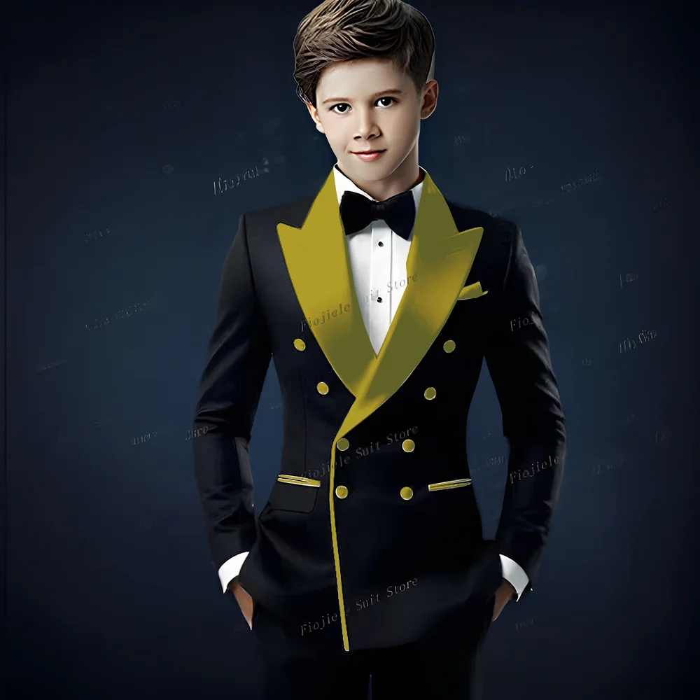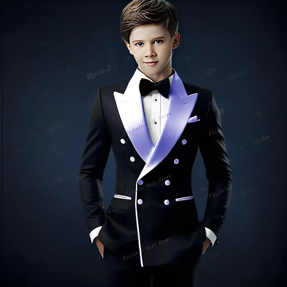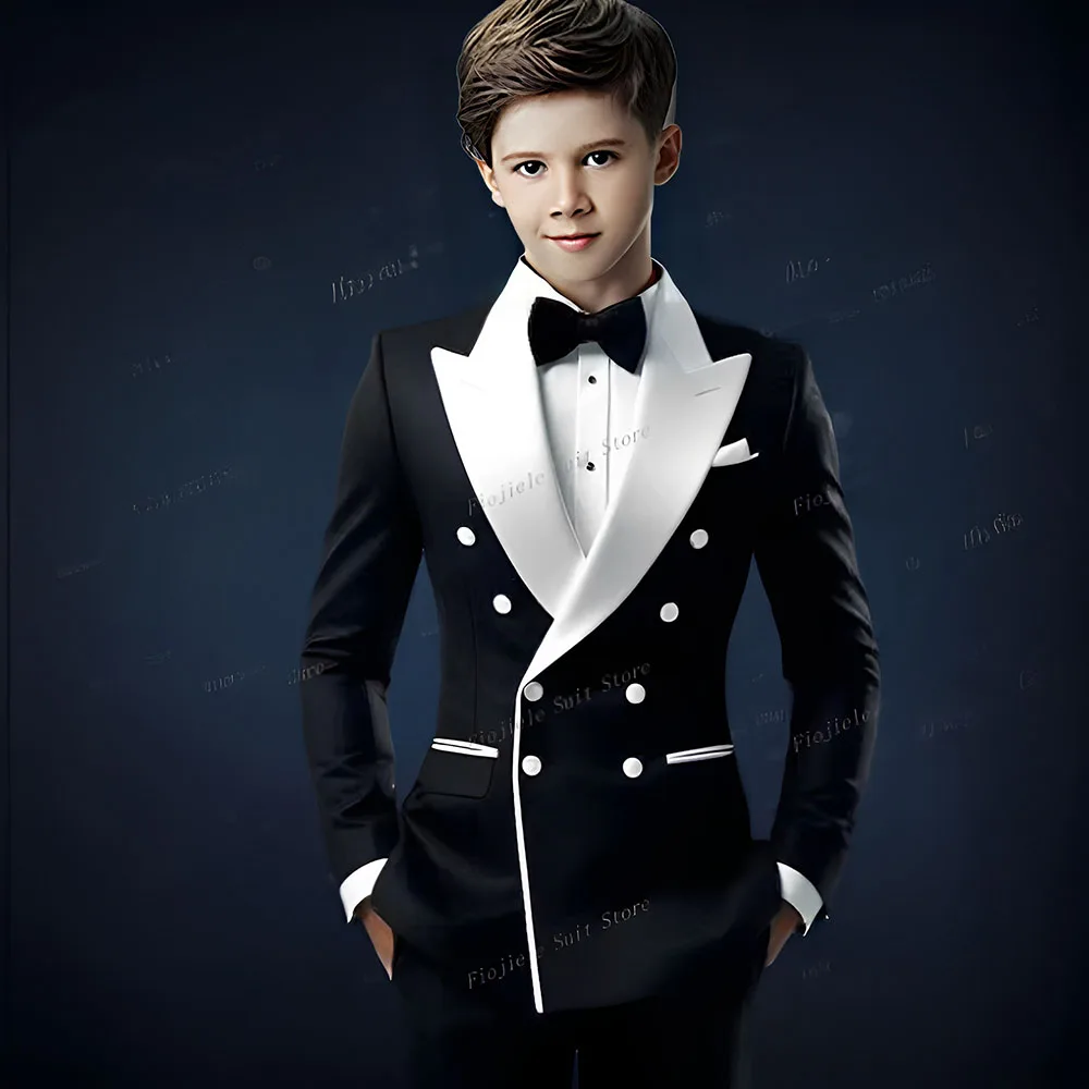 White Lapel Black Formal Occasion Boy Suit Wedding Party Prom Business Casual Kids Tuxedos 2 Piece Set Blazer Pants