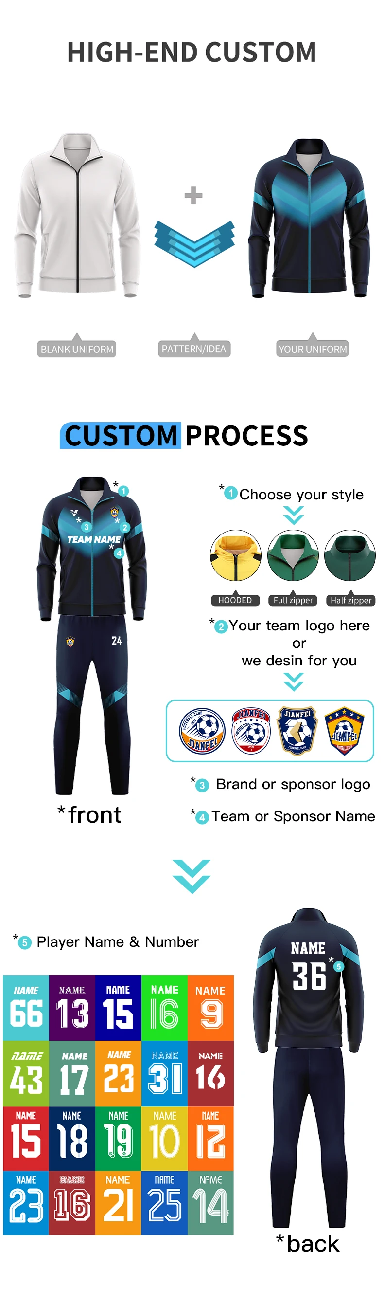 Wholesale Full Zip Custom Soccer Tracksuit Long Sleeve Training Jogging Sportswear Men Football Team Tracksuit Sportswear X25809