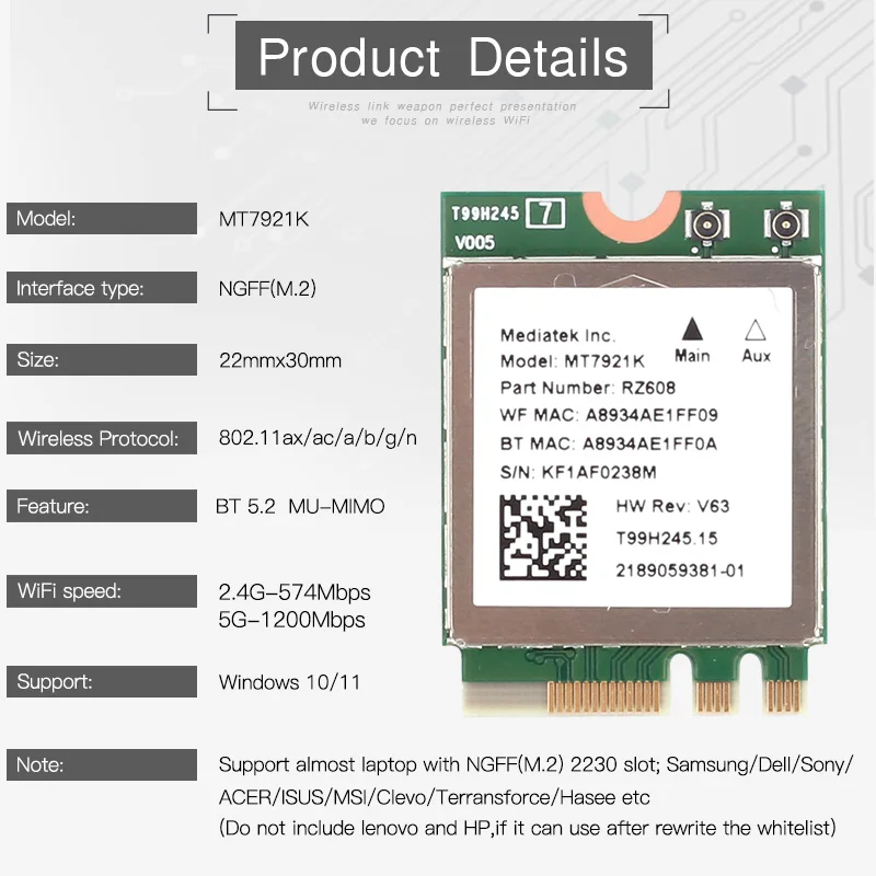- Model Name: MT7921K
