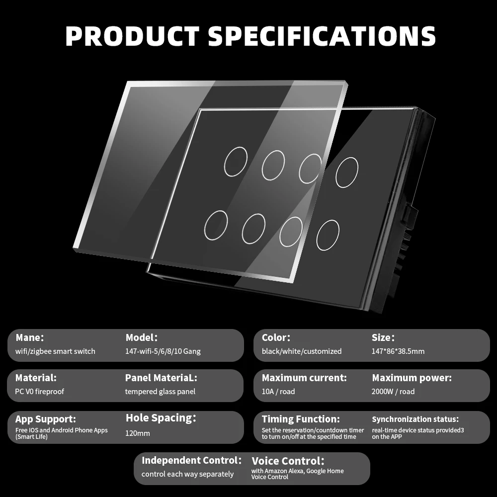 Tempered glass touch screen of this diy smart switch is sensitive to the touch of control, premium durable glass material provides up to 20 million touch figures through our rigorous testing