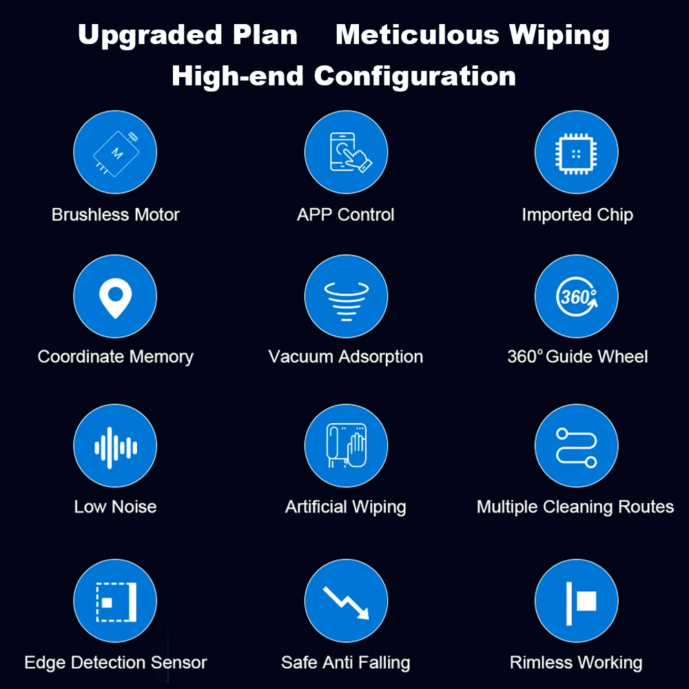 The automatic window cleaner is equipped with a German brushless motor, which increases the service life and reduces noise. 2500Pa super strong suction power makes the window vacuums stronger adsorption power and easier to remove stubborn stains. Firmly suck the window, more stable and safer.