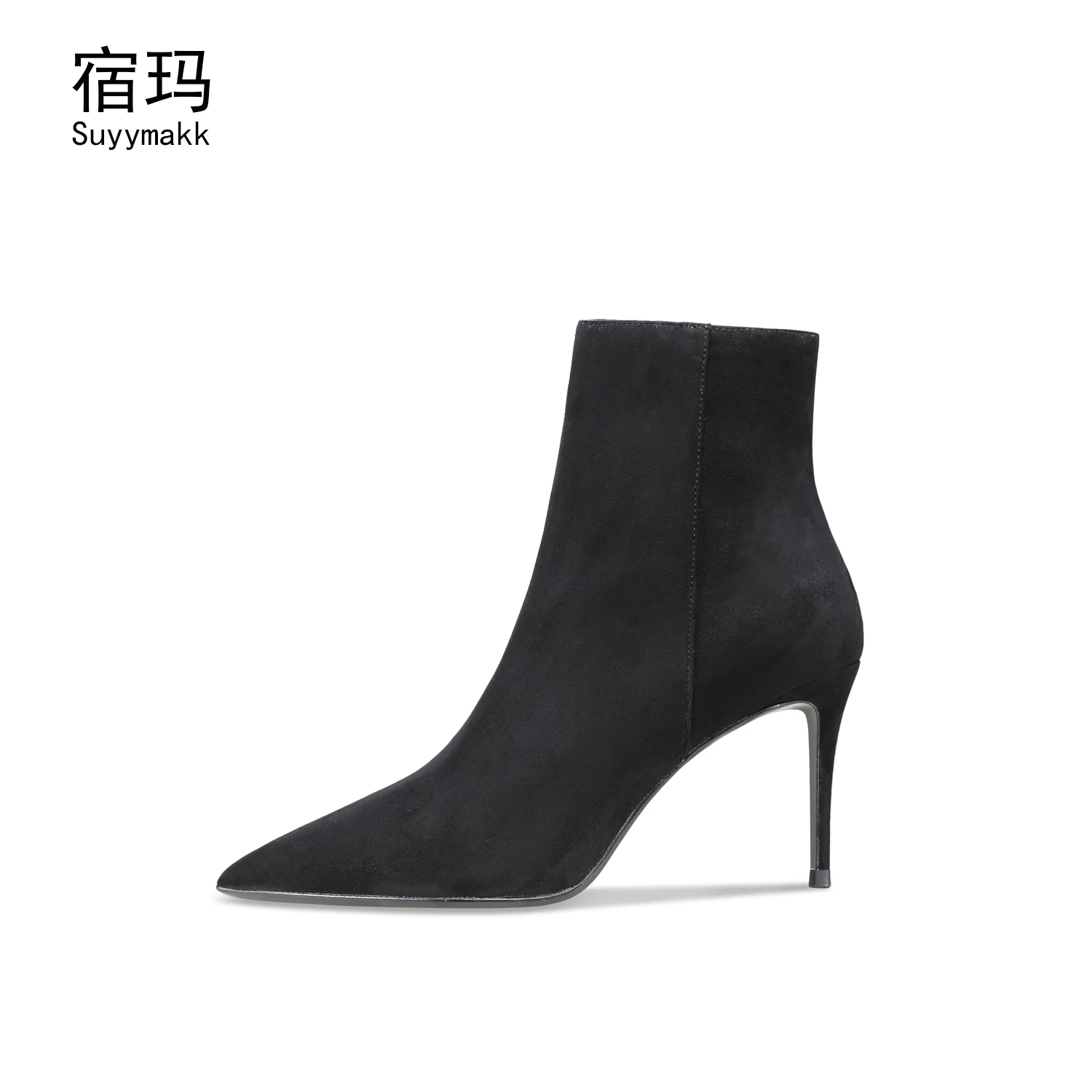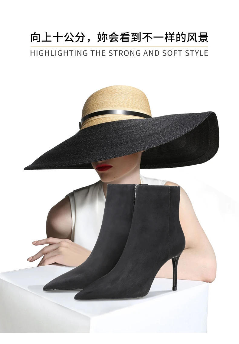 Winter Ankle Boots 2022 Brand Women’s Boots Suede Black Fashion High-Heeled Pointed Toe Shoes Zip Sexy Party Modern Boots 6/8cm