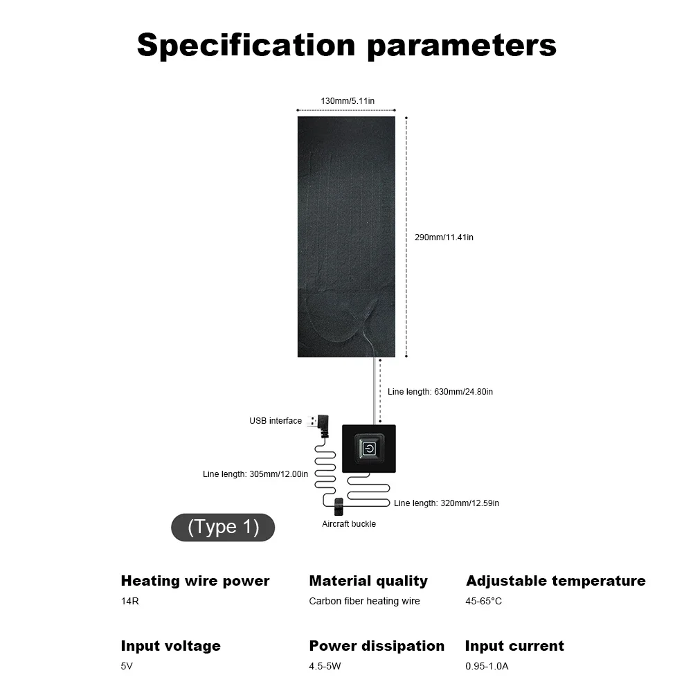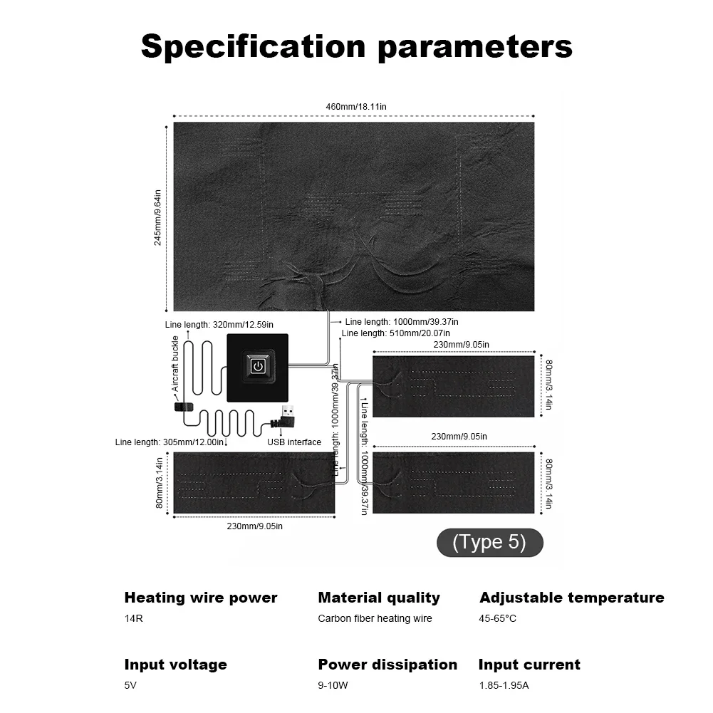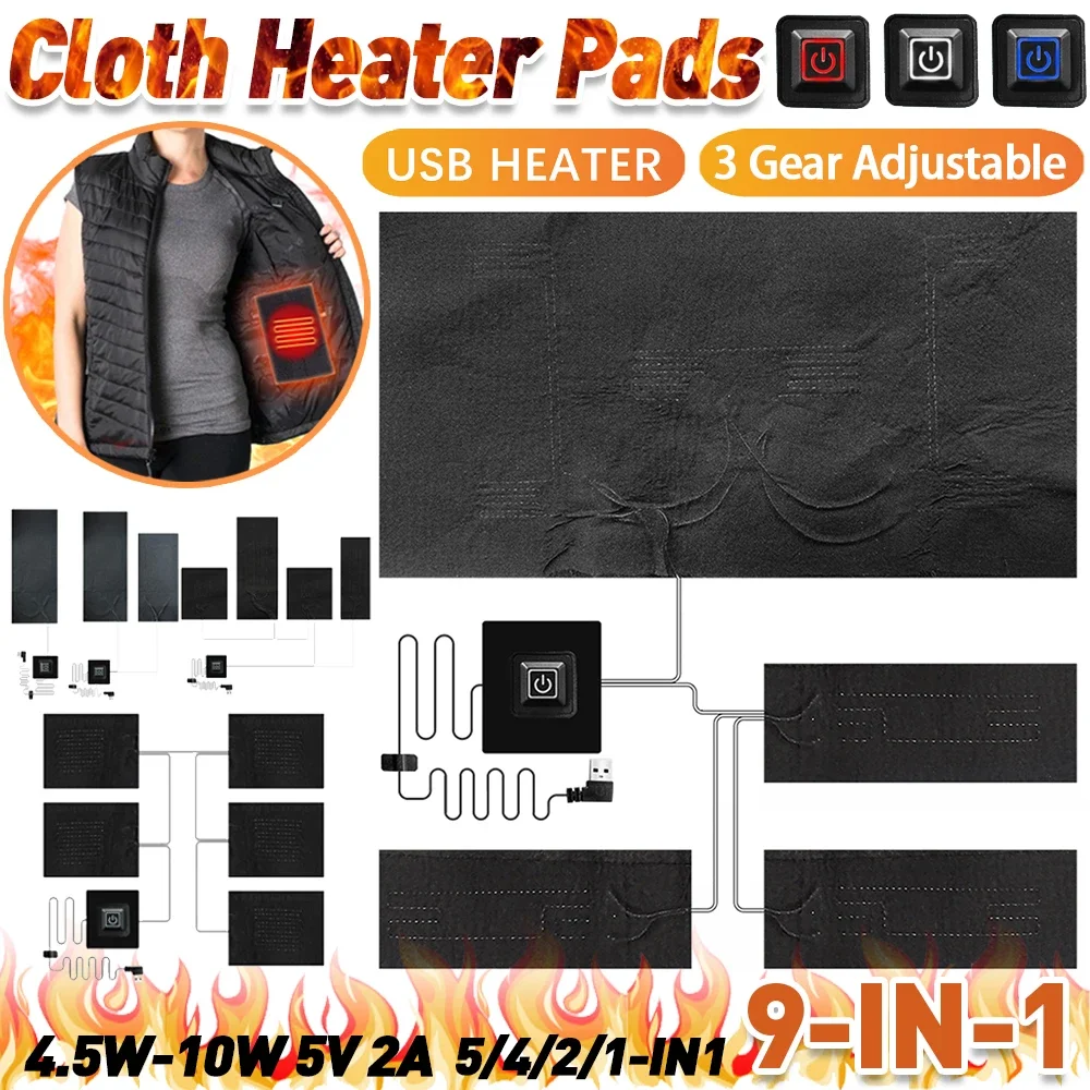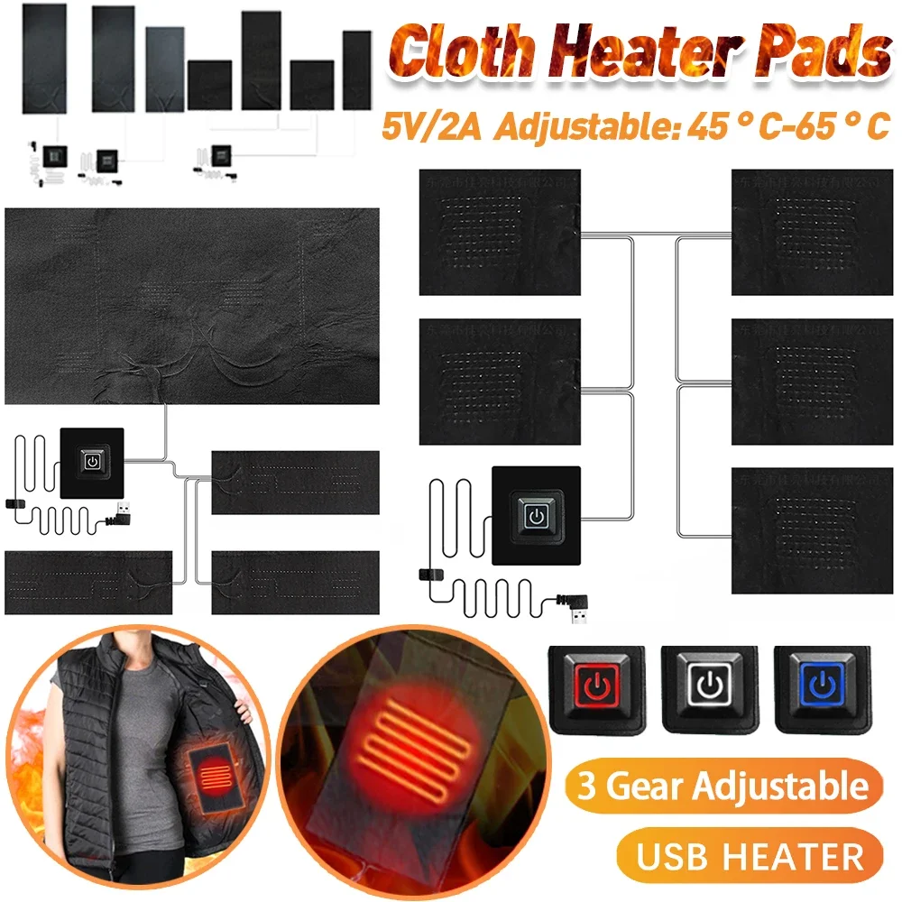 Temperature Control Pad Waterproof Electric Heating Sheet 3 Gear Adjustable Cloth Jacket Heater Pads 5V DIY Heat Clothing for Camping Hiking