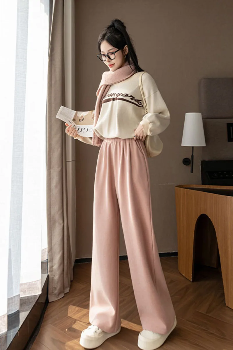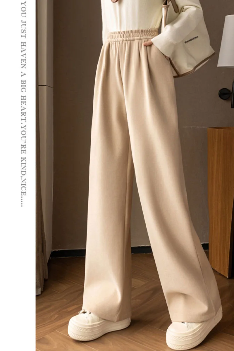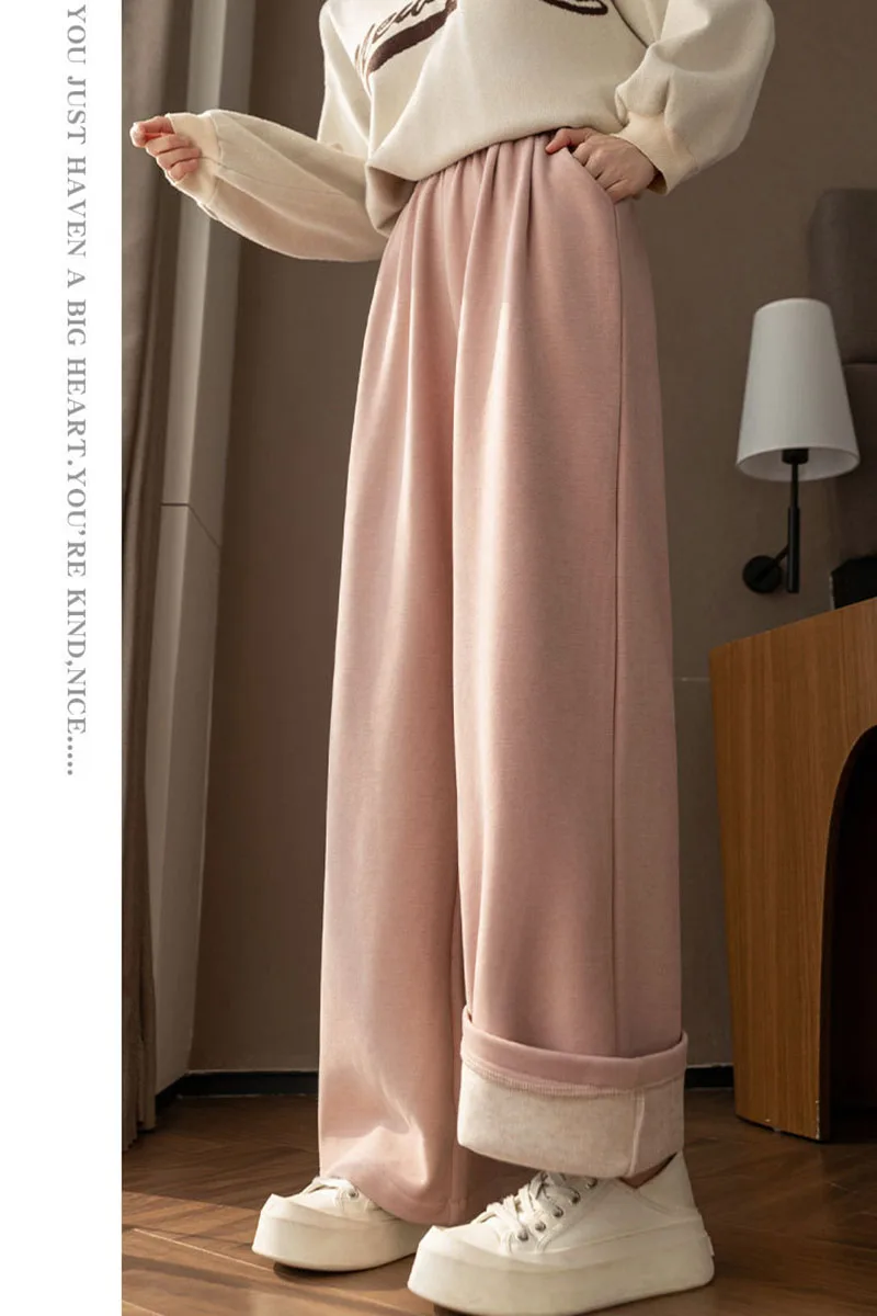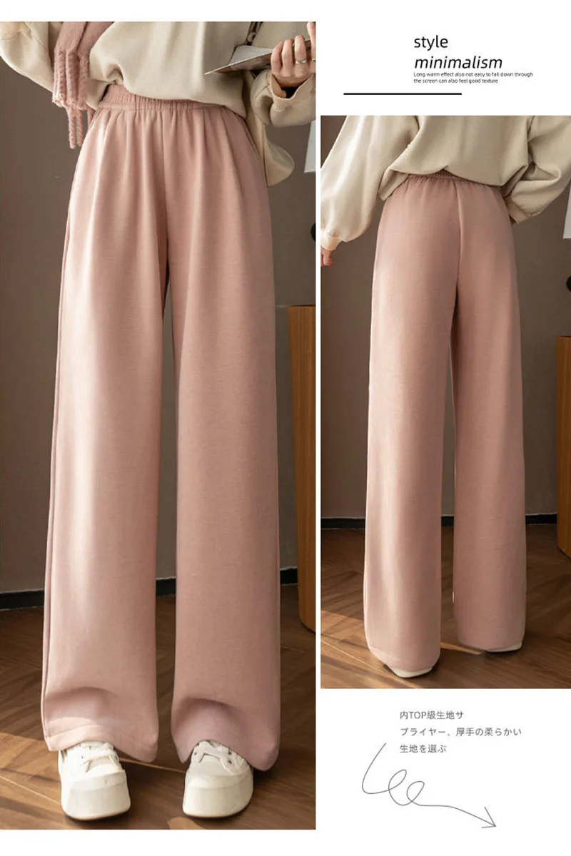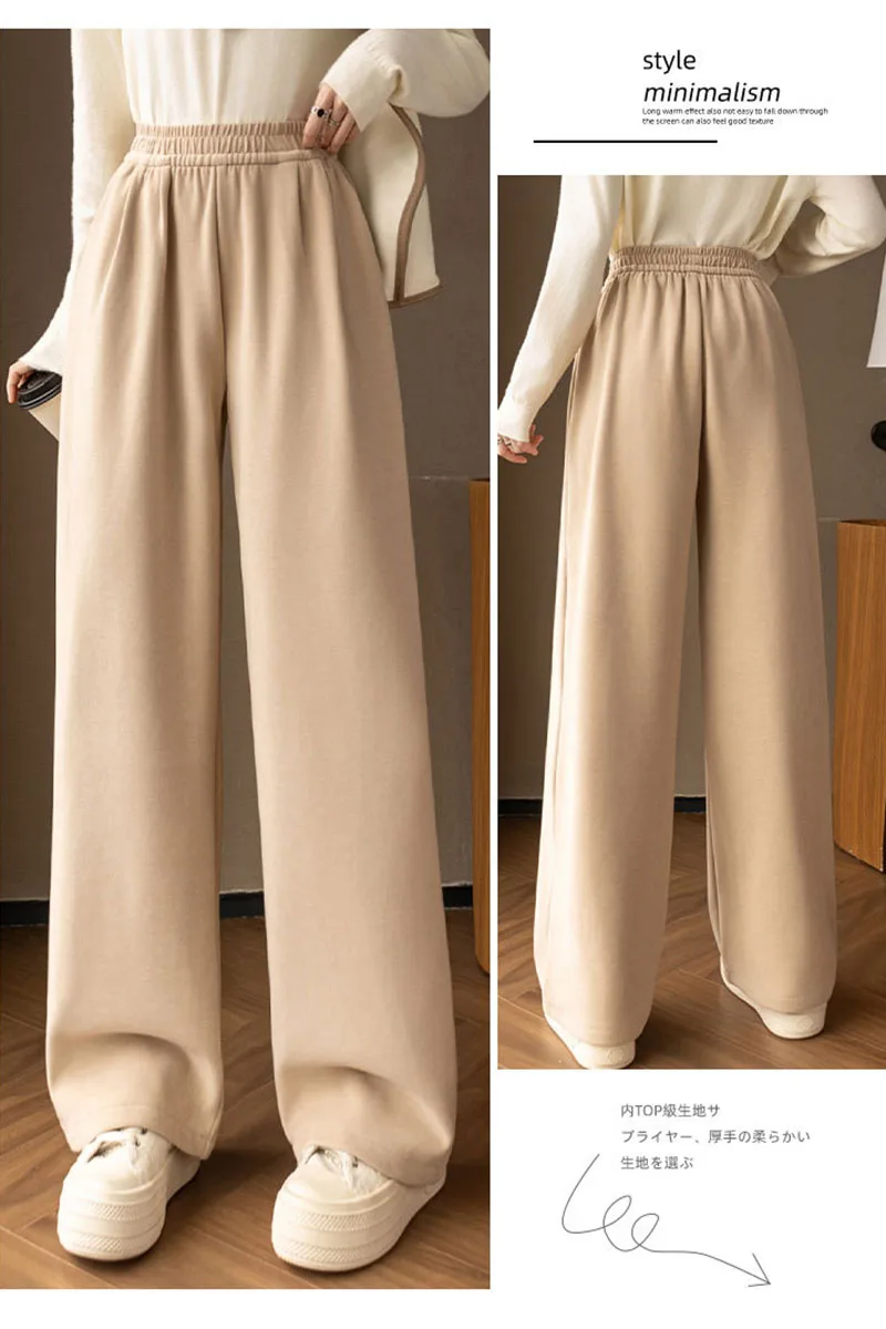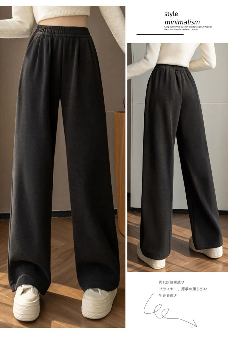 Winter Thickened Wide-Leg Pants for Women High Waist Loose Draped Style Floor-Length Trousers New Fleece Keep Warm Casual Pants