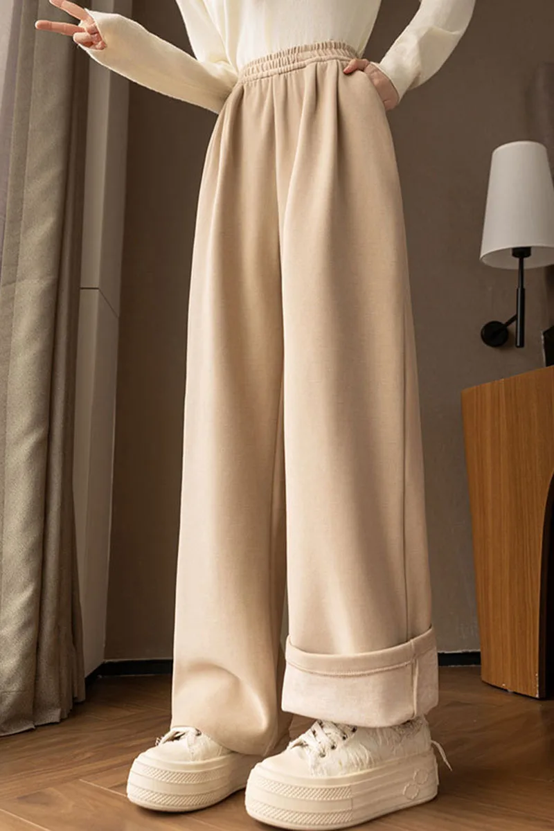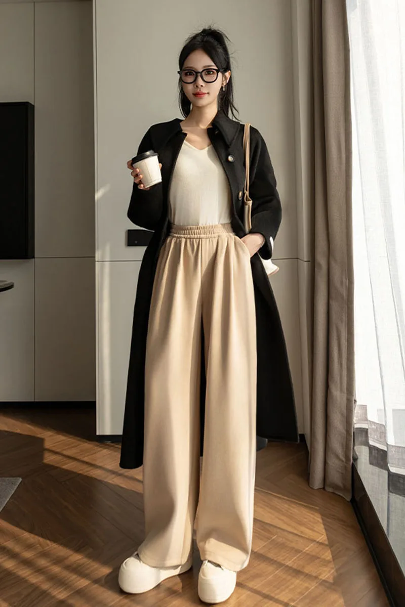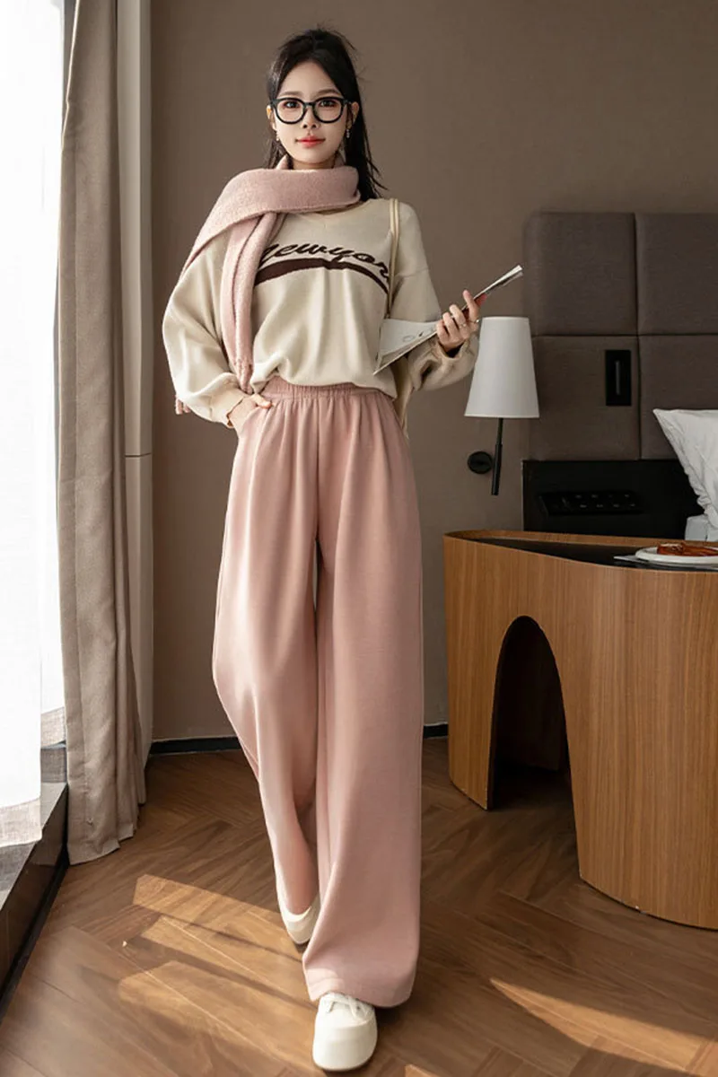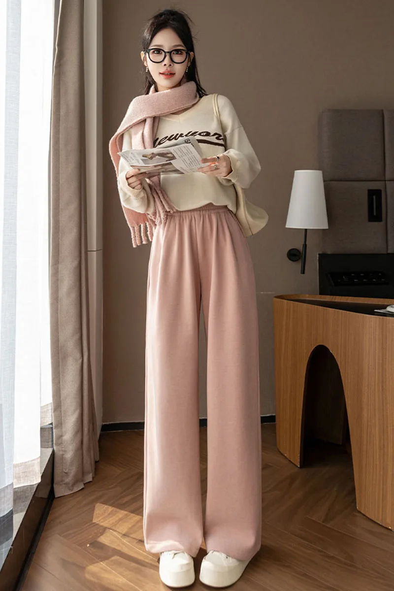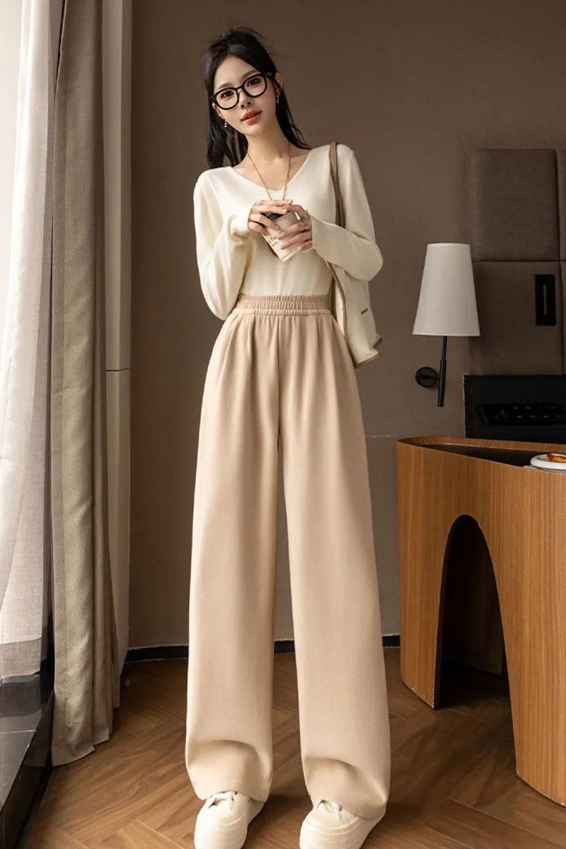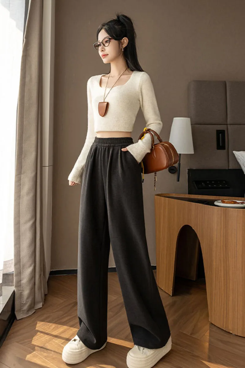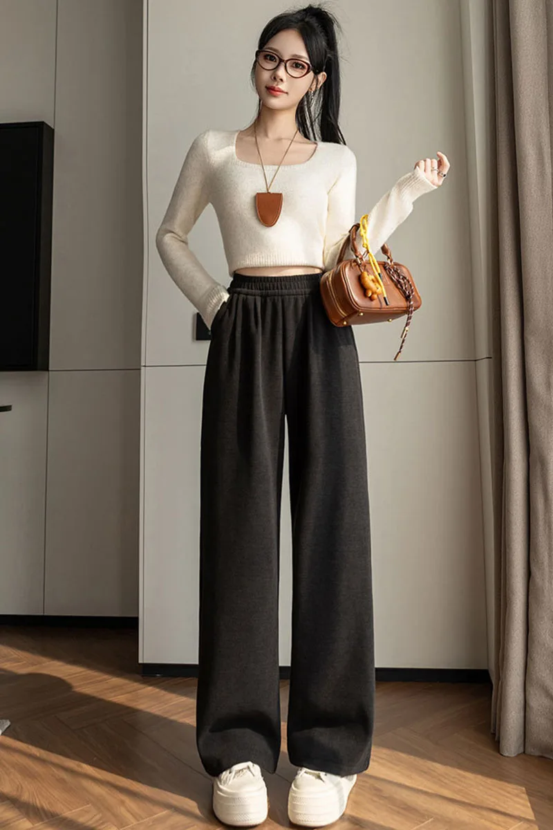 Winter Thickened Wide-Leg Pants for Women High Waist Loose Draped Style Floor-Length Trousers New Fleece Keep Warm Casual Pants