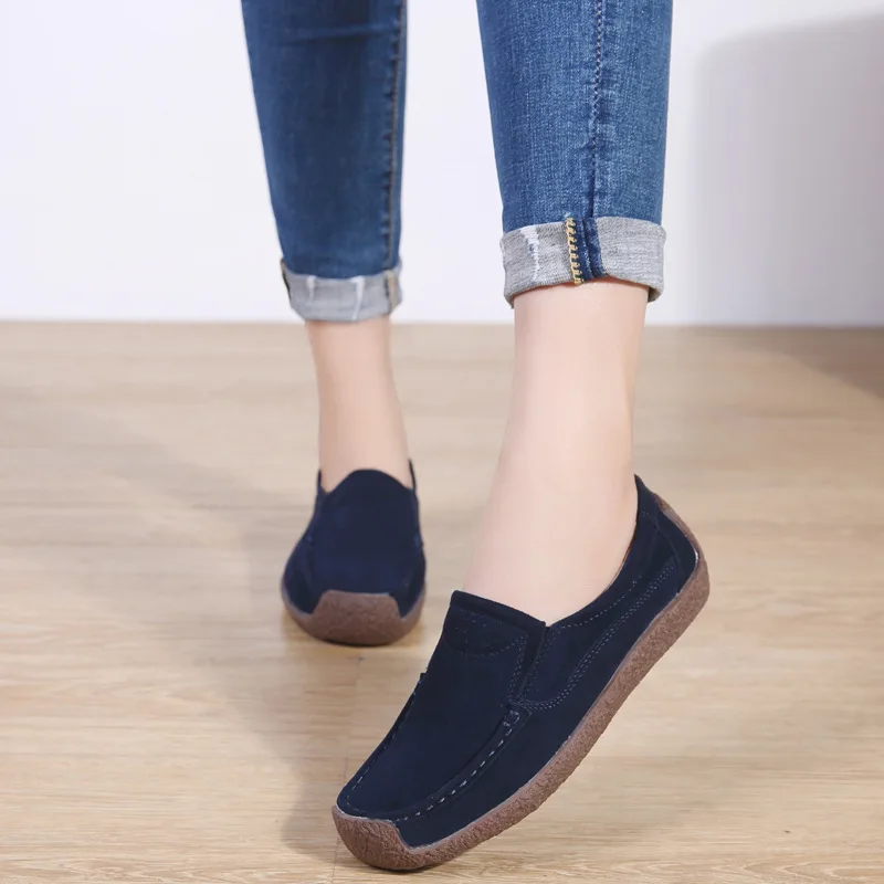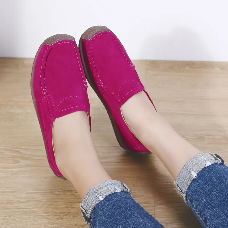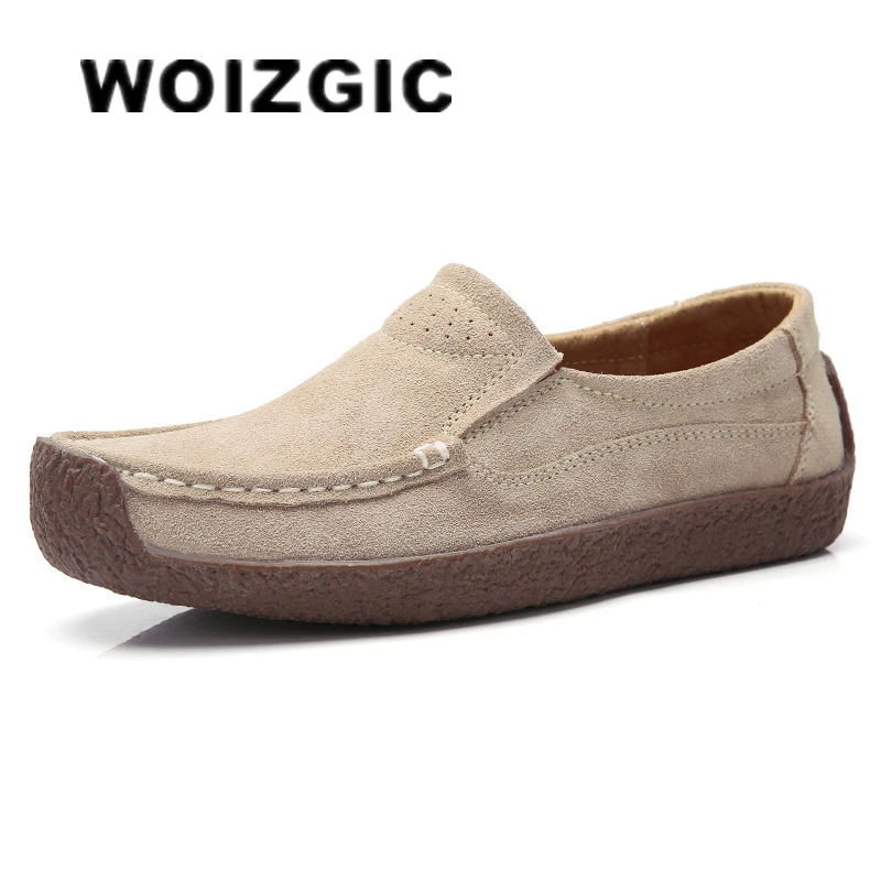 WOIZGIC Gril Female Women’s Cow Suede Genuine Leather Shoes Flats Slip On Woman Lady Loafers Slip On Mocasines Mujer AM-526