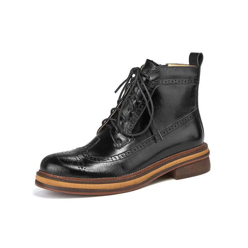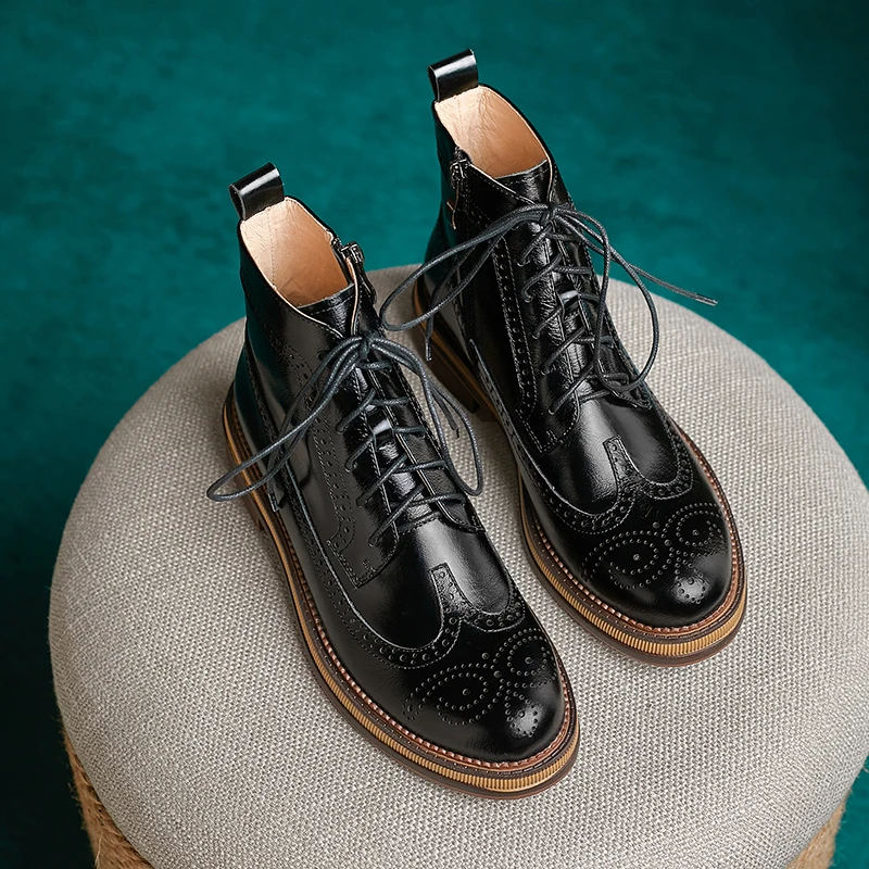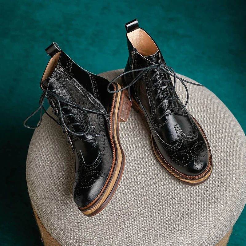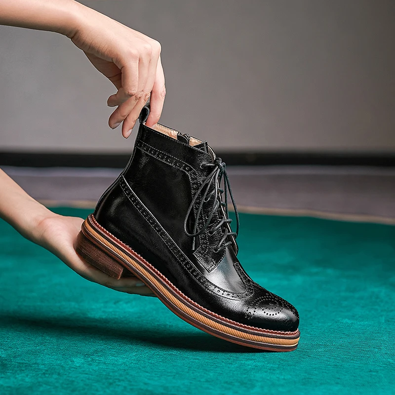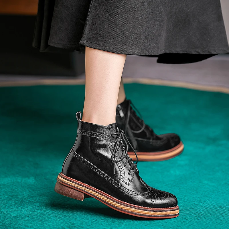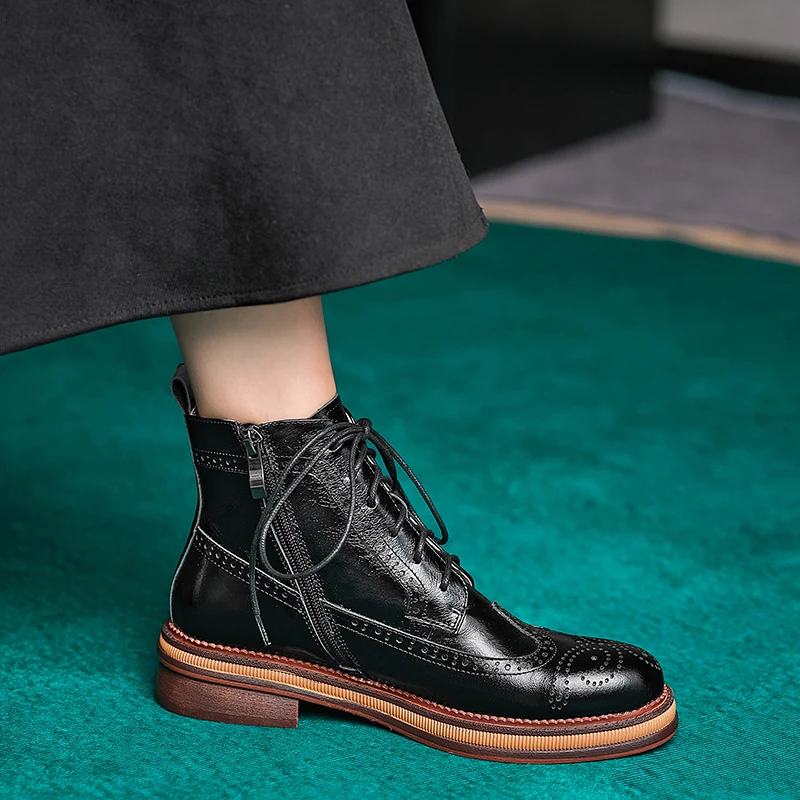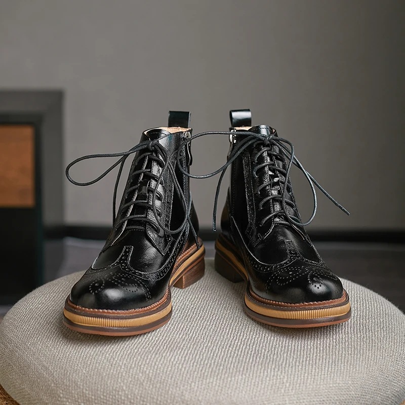 Women Boots Brogue Booties Classics Style Ladies Designer Shoes Lace-Up Boots for Women Genuine Leather Ankle Boots Botas